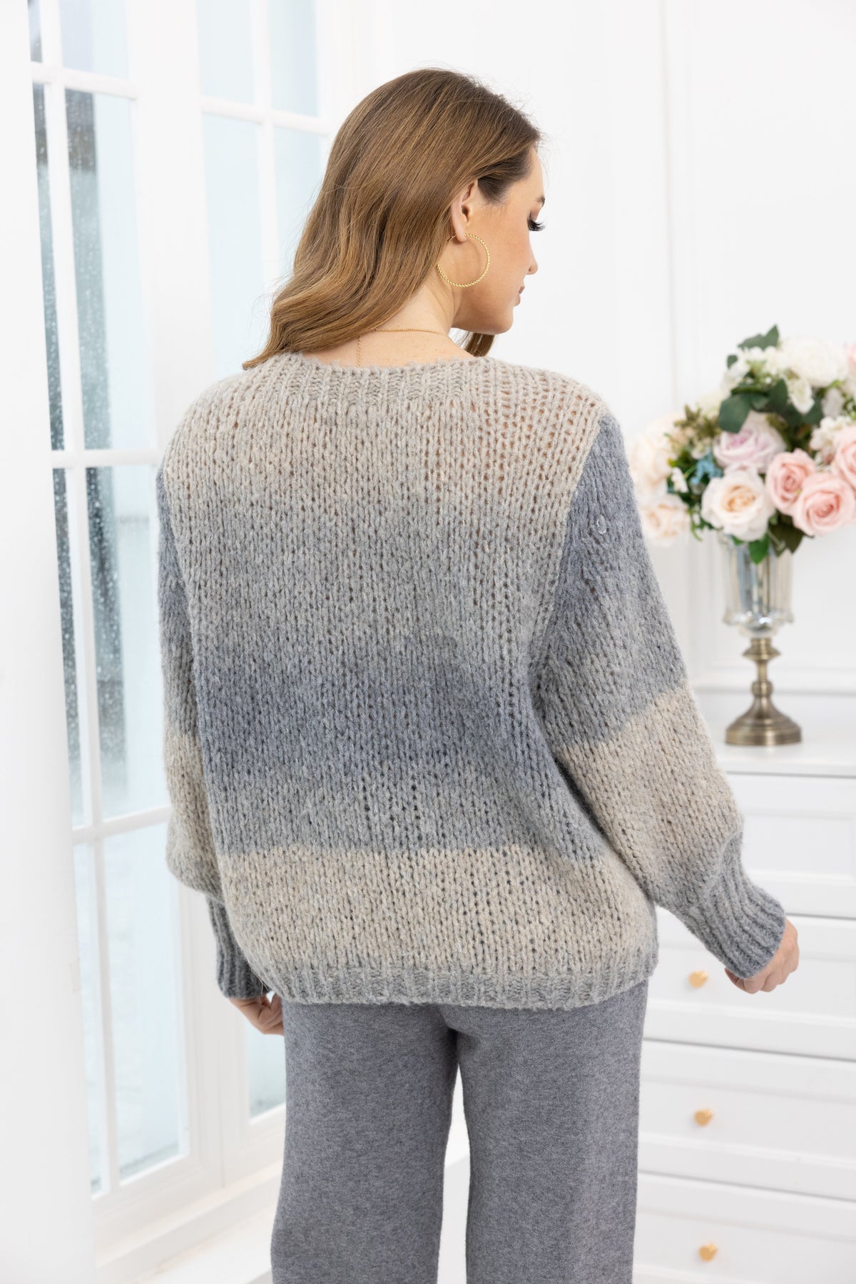 Experience the refined craftsmanship of this Chunky Knit Sweater, expertly made in Italy. Featuring long sleeves and a sophisticated ombre design, it combines warmth with a modern aesthetic. The thick knit provides exceptional comfort and durability, making it an ideal choice for cooler seasons while elevating your wardrobe with Italian quality and style.