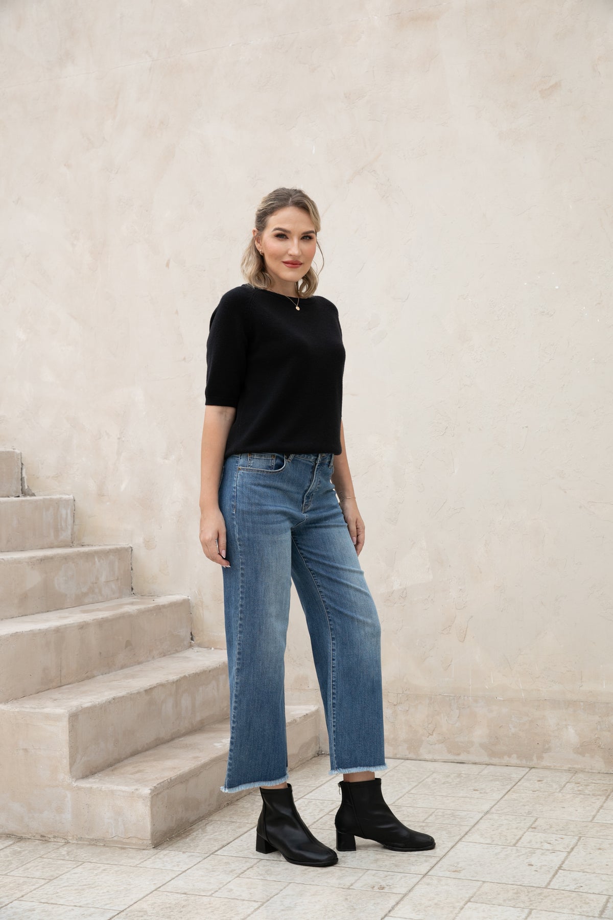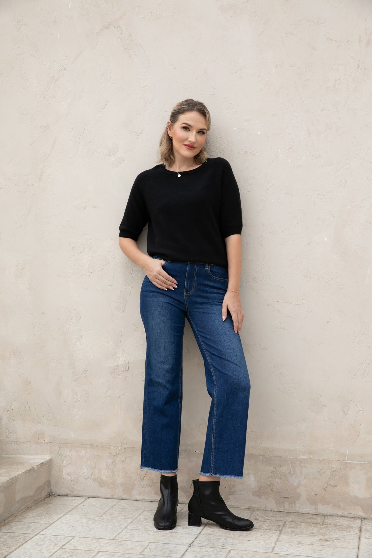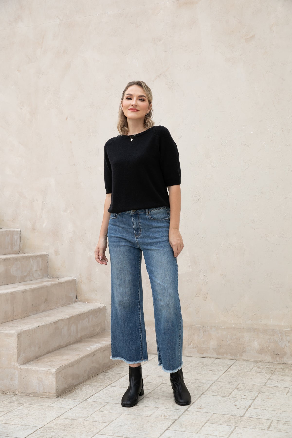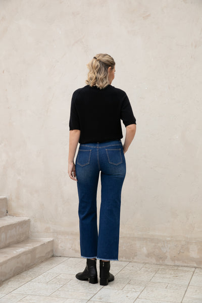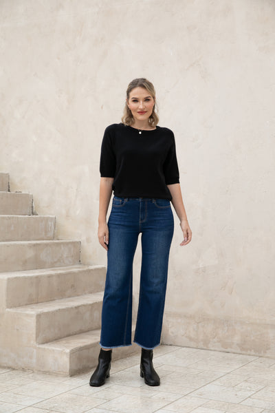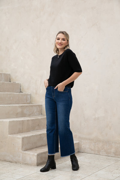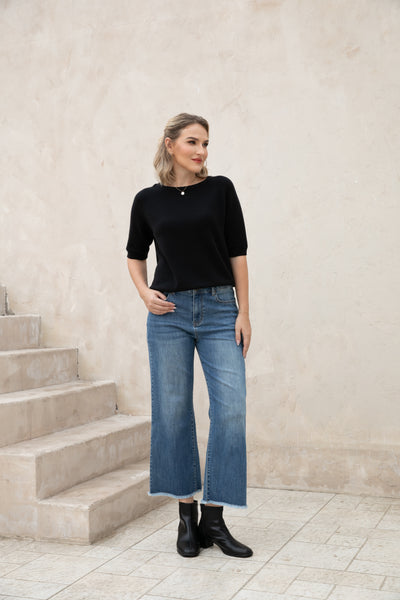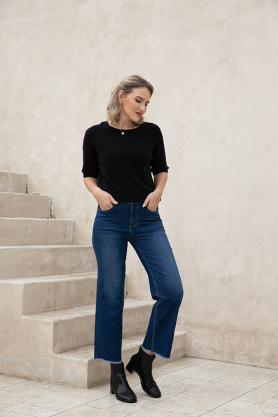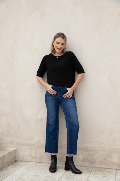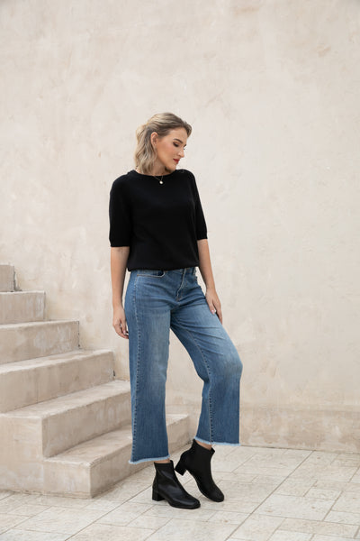 Introducing our Bamboo Wide Leg Jeans, made with eco-friendly bamboo denim for a comfortable and relaxed fit. The fringe hem detail adds a stylish touch while being finished to prevent any pulling. Upgrade your wardrobe with sustainable fashion.