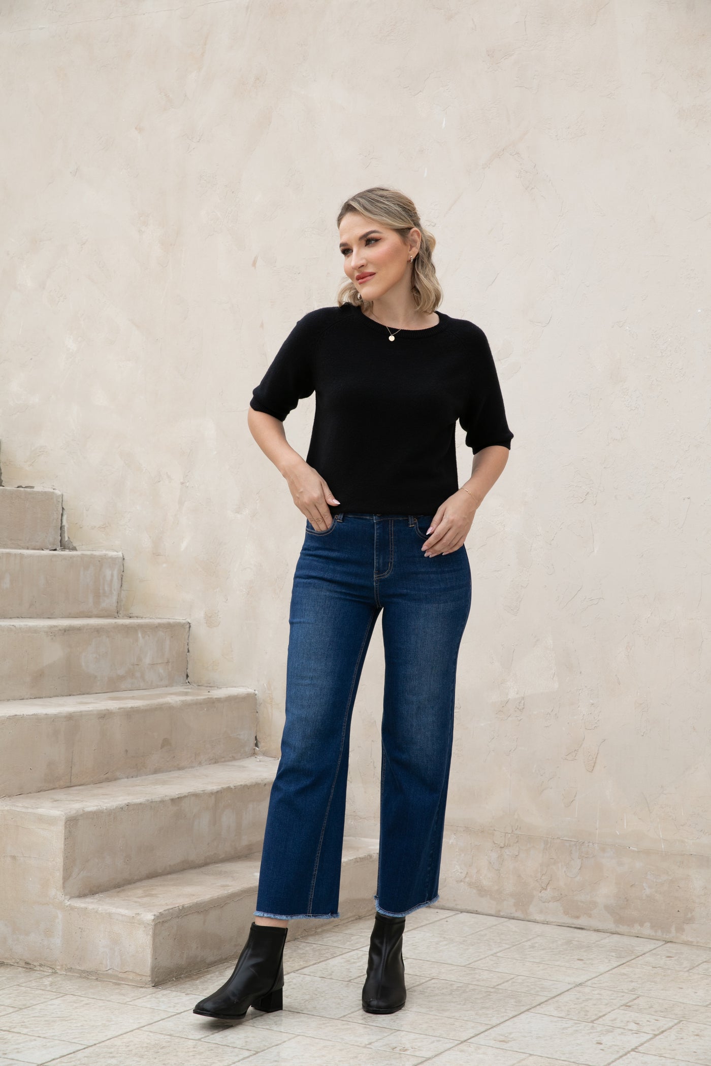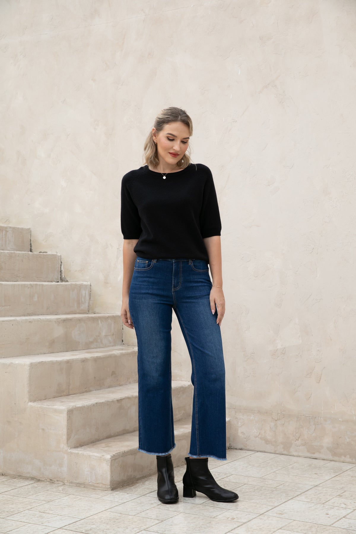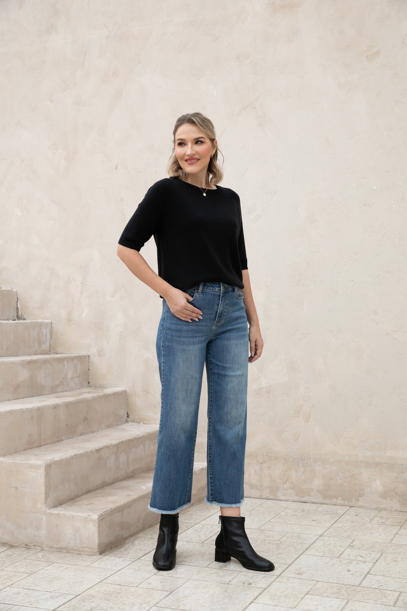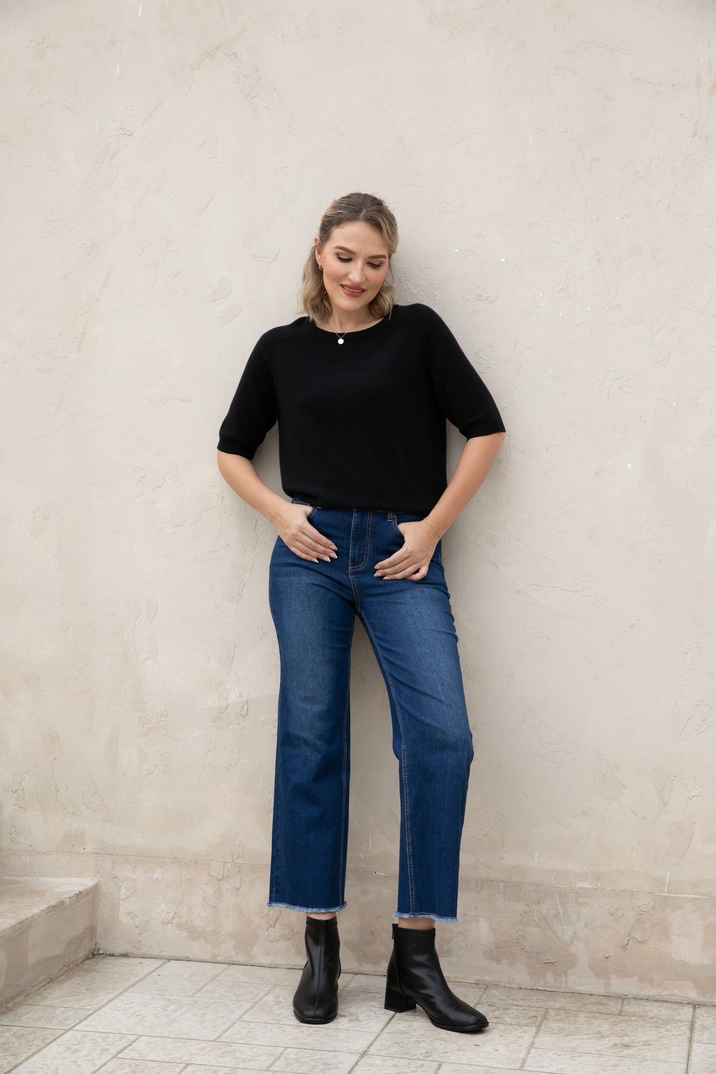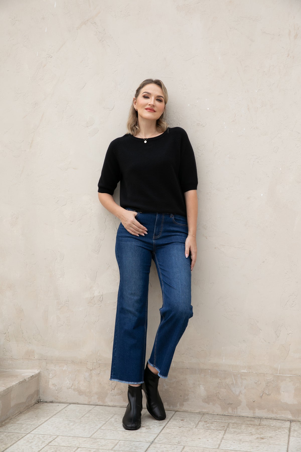 Introducing our Bamboo Wide Leg Jeans, made with eco-friendly bamboo denim for a comfortable and relaxed fit. The fringe hem detail adds a stylish touch while being finished to prevent any pulling. Upgrade your wardrobe with sustainable fashion.