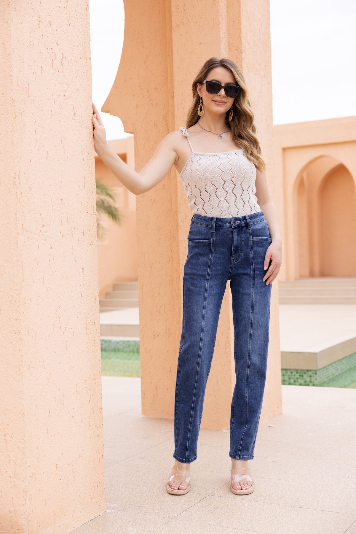 Contour Denim features precise seaming details that create a contoured silhouette, enhancing your natural shape with a flattering fit. Crafted from premium bamboo denim, these jeans offer a sustainable and comfortable wear while delivering an elevated, polished look suitable for any occasion.