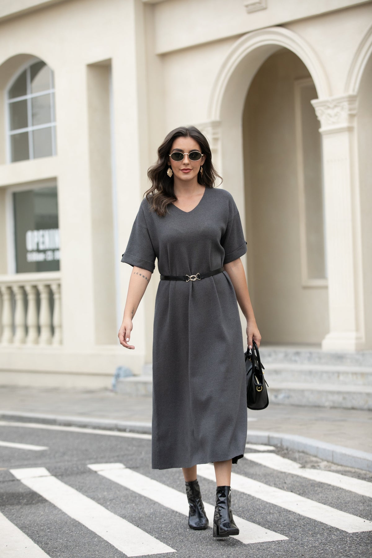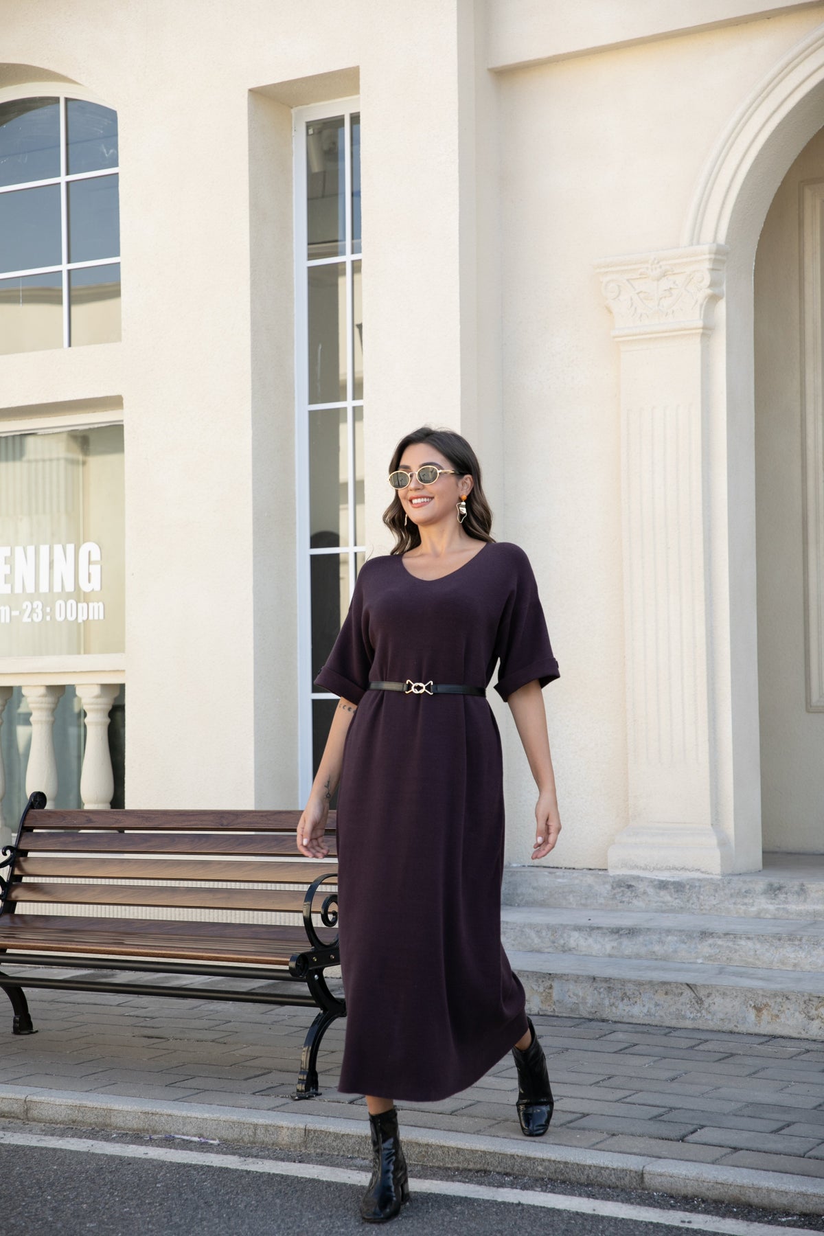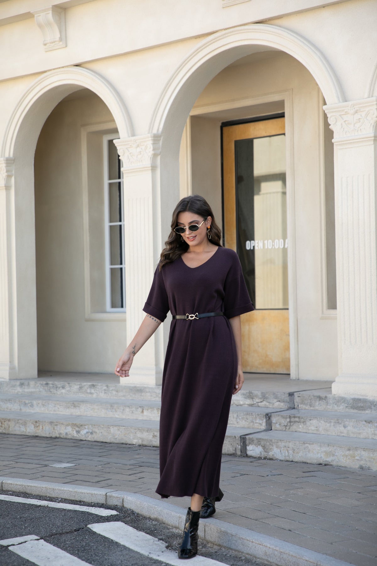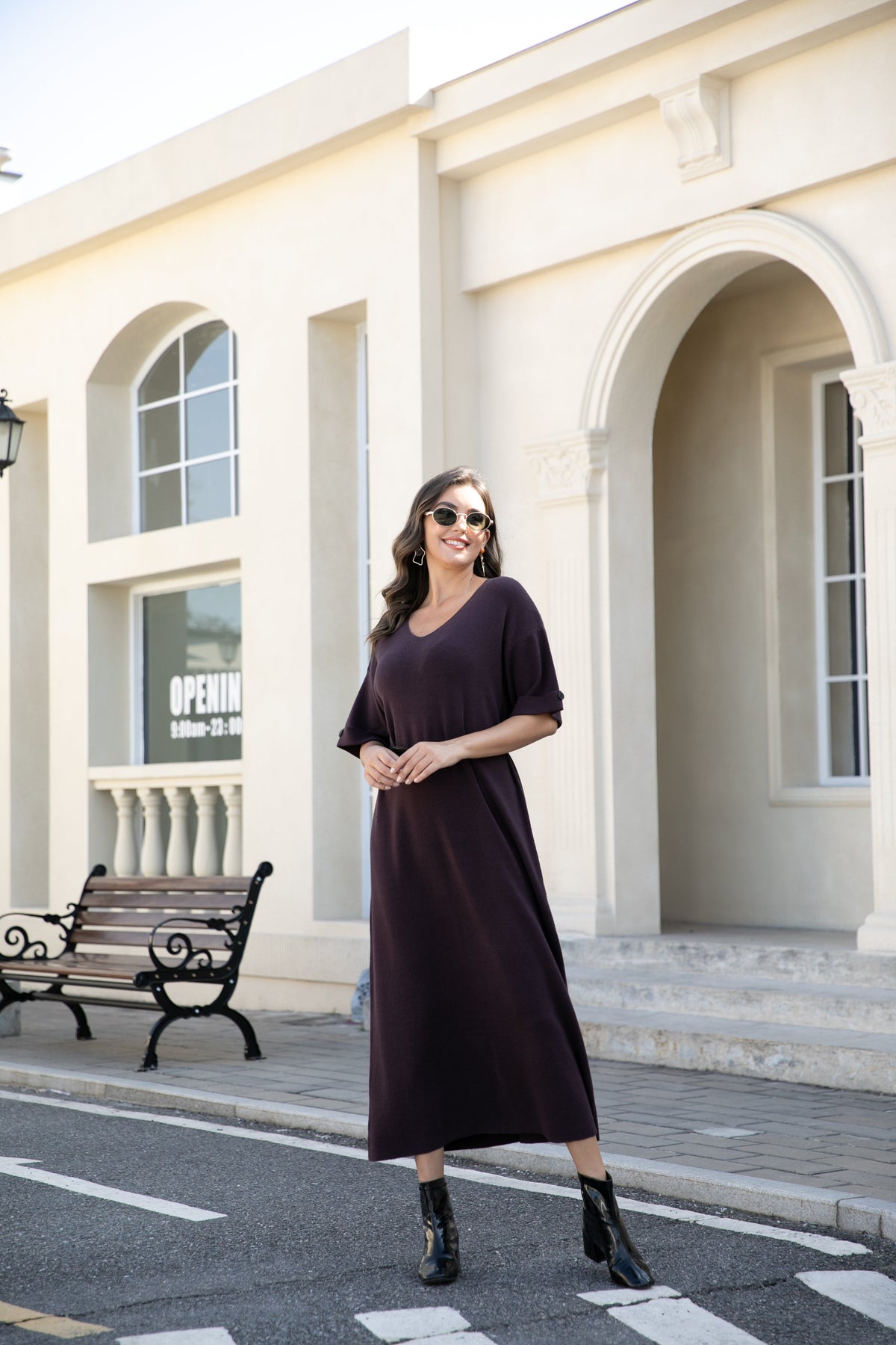 Experience effortless style with Mila's Knit Dress. This long, lightweight and breathable dress is the perfect addition to your Fall wardrobe. The elbow sleeves add a touch of sophistication, making it the perfect choice for any occasion. Elevate your fashion game with this comfortable yet chic dress.