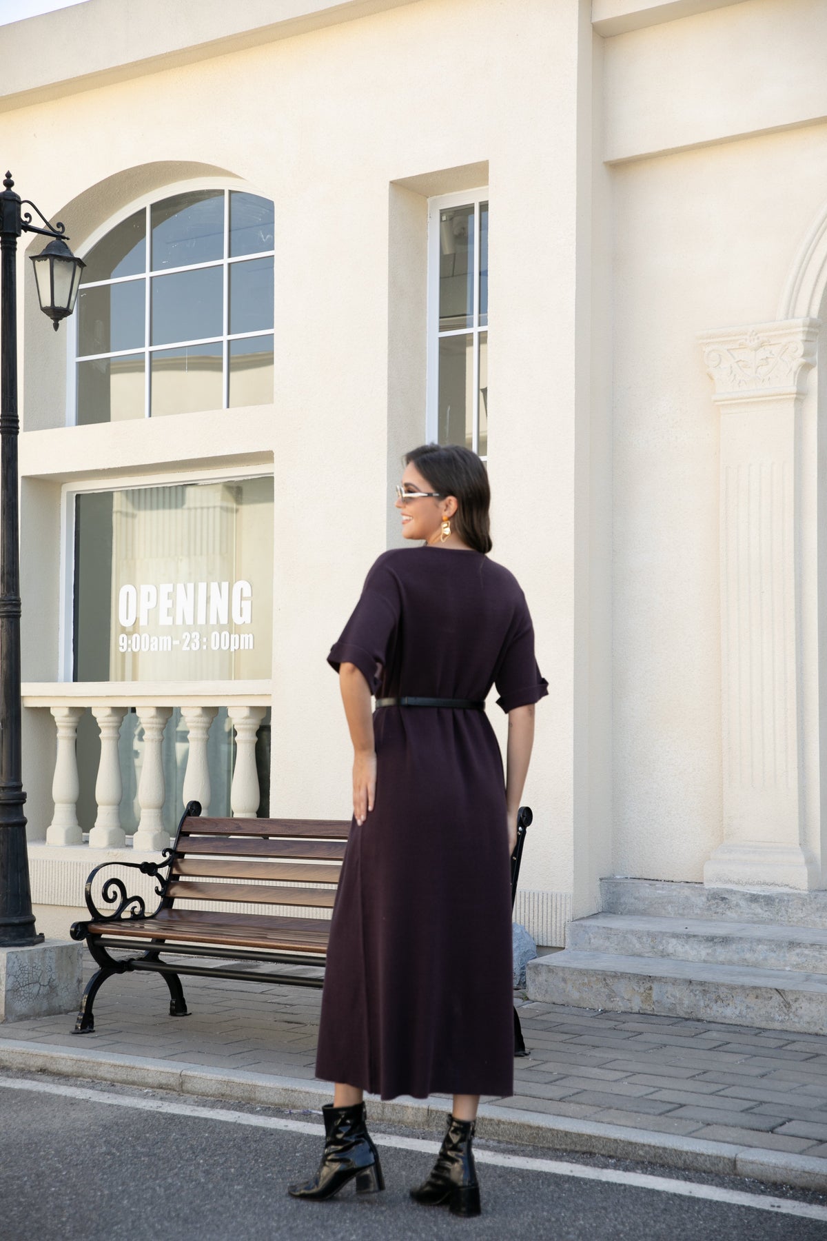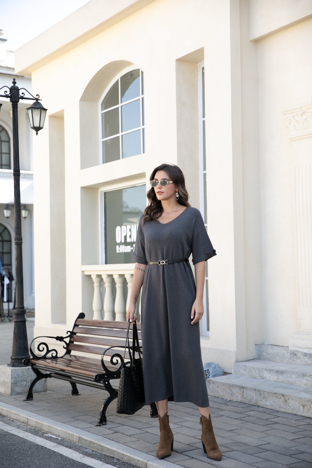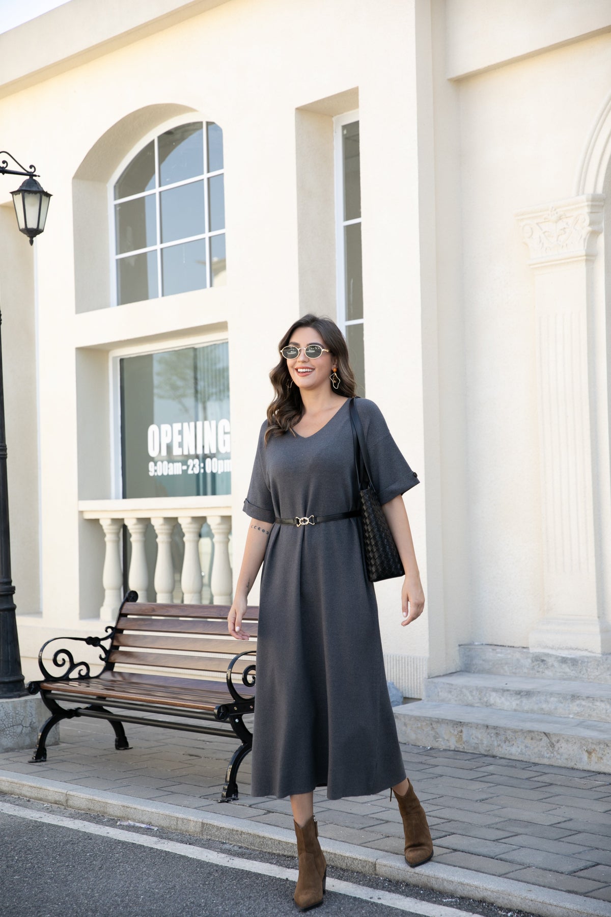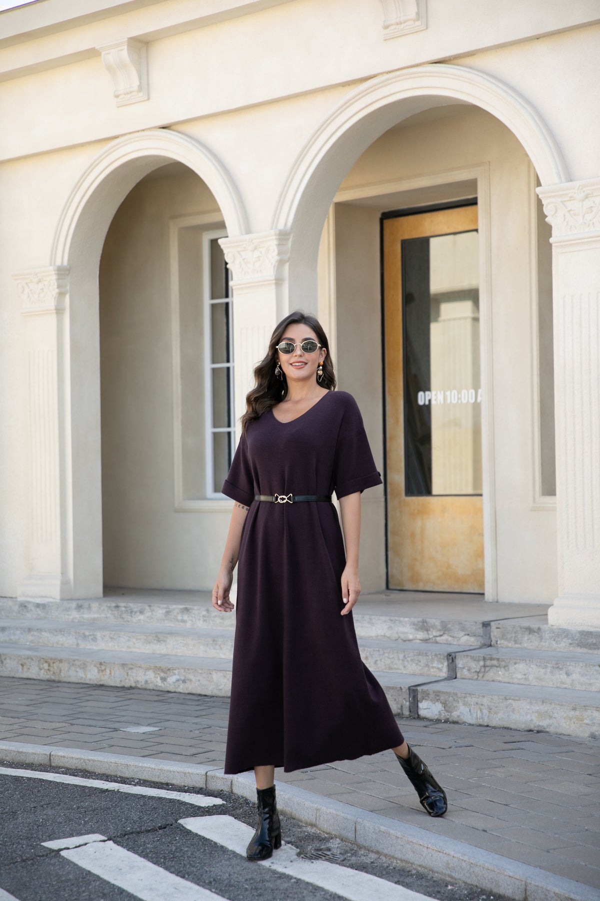 Experience effortless style with Mila's Knit Dress. This long, lightweight and breathable dress is the perfect addition to your Fall wardrobe. The elbow sleeves add a touch of sophistication, making it the perfect choice for any occasion. Elevate your fashion game with this comfortable yet chic dress.