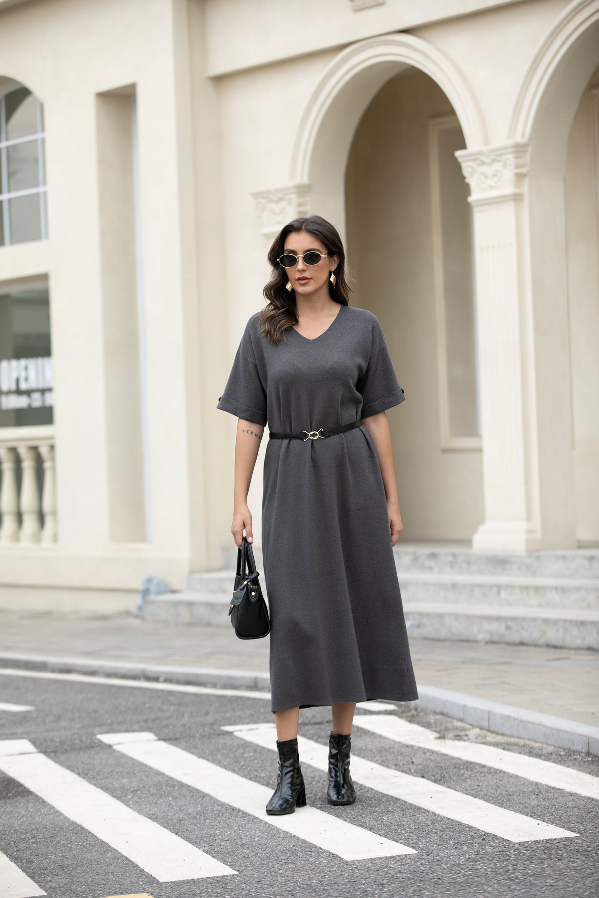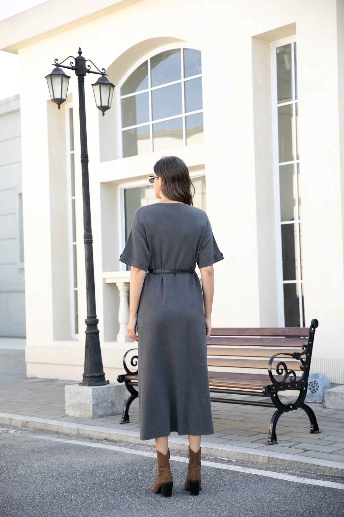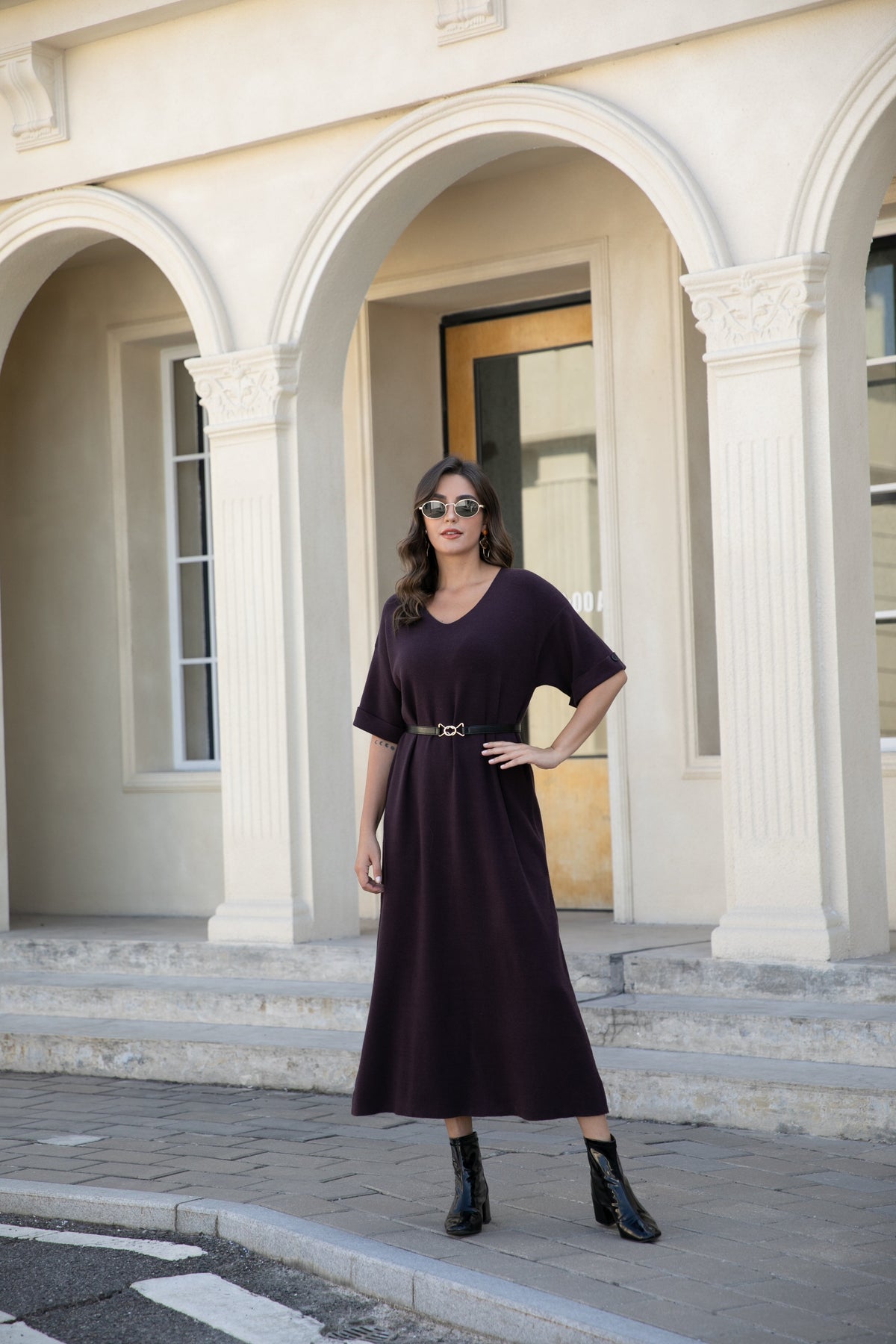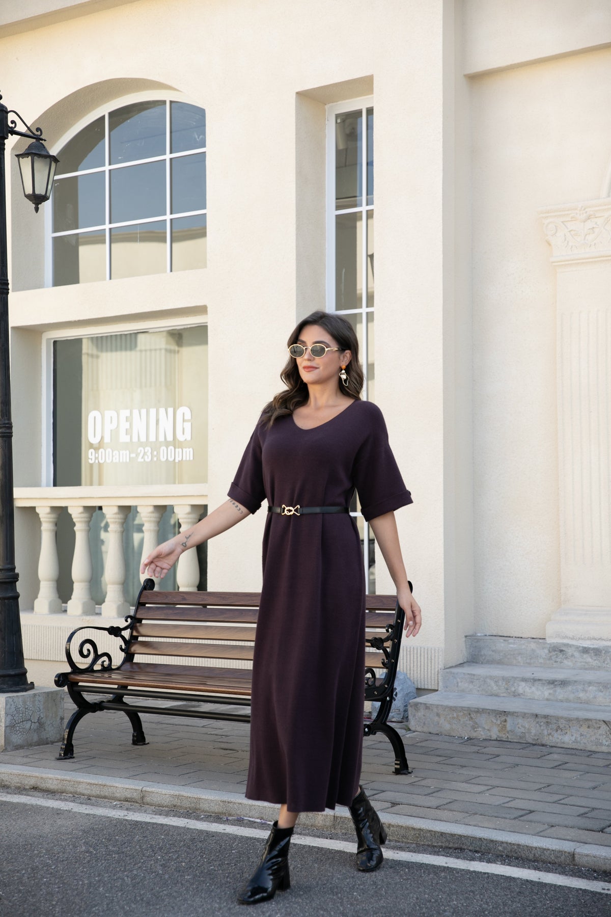 Experience effortless style with Mila's Knit Dress. This long, lightweight and breathable dress is the perfect addition to your Fall wardrobe. The elbow sleeves add a touch of sophistication, making it the perfect choice for any occasion. Elevate your fashion game with this comfortable yet chic dress.