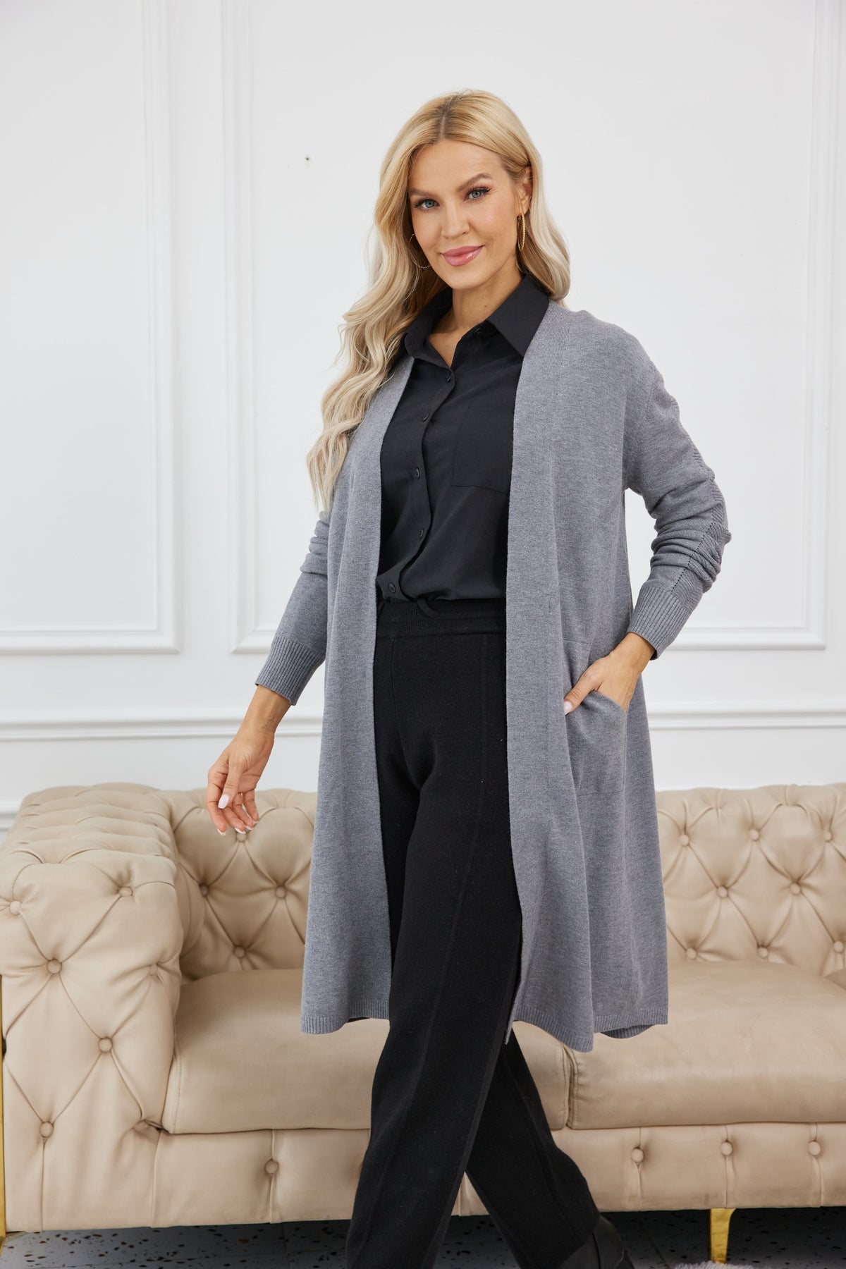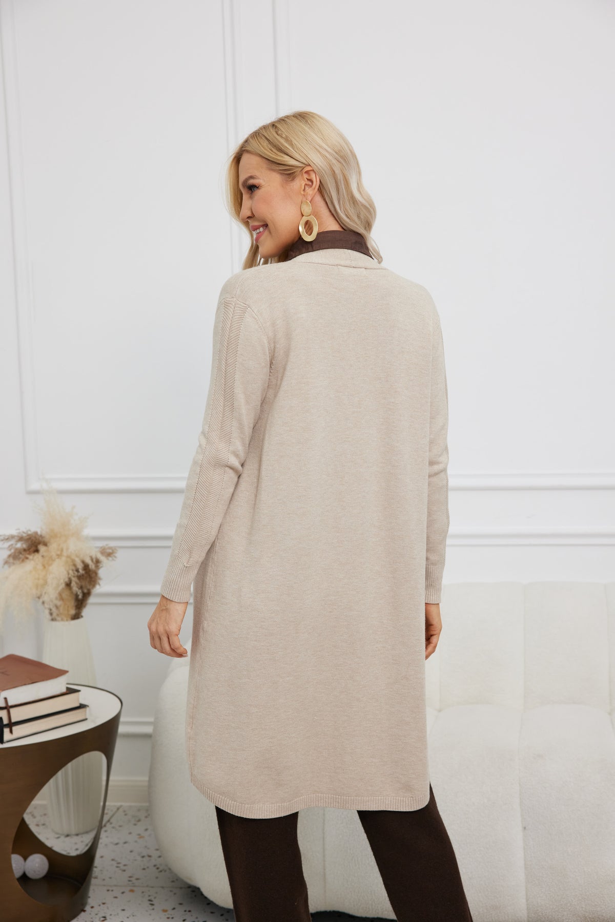 Introducing the "Breezy Chevron Cardigan," a versatile and stylish addition to your wardrobe. Crafted from lightweight and airy knit fabric, this long-length cardigan offers effortless comfort and style for any season.