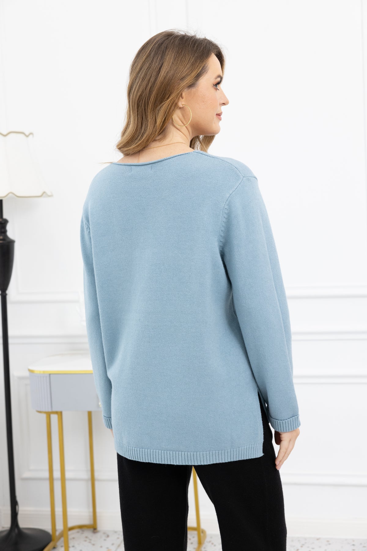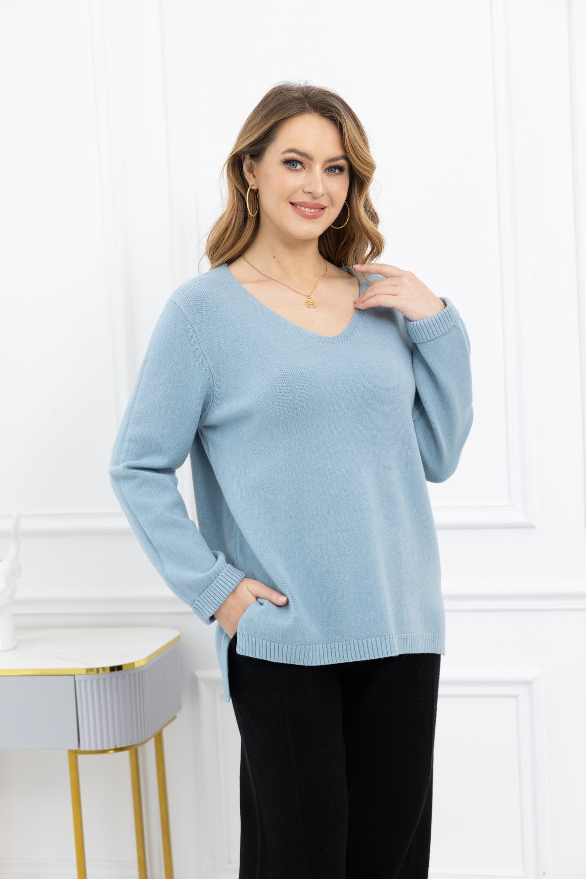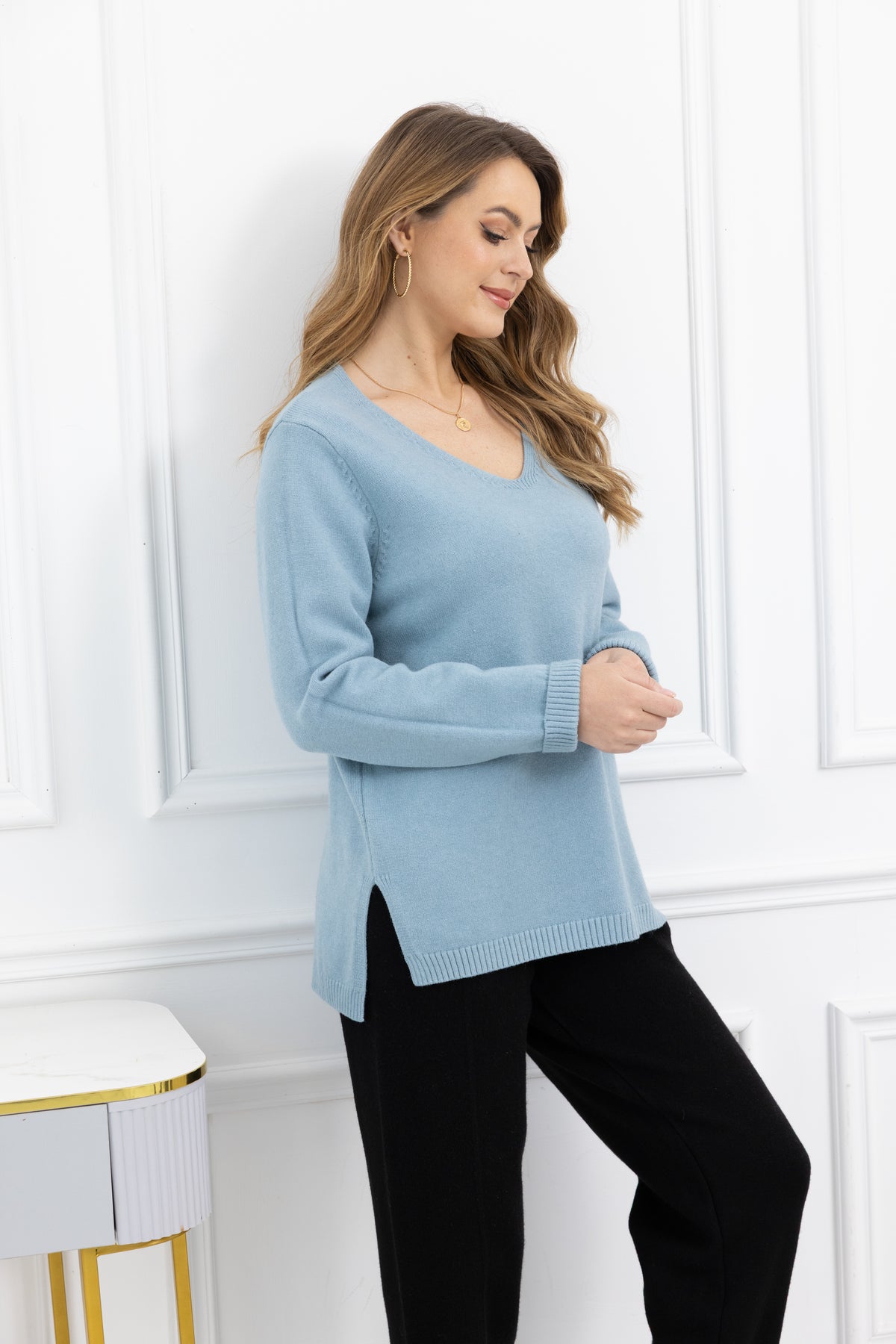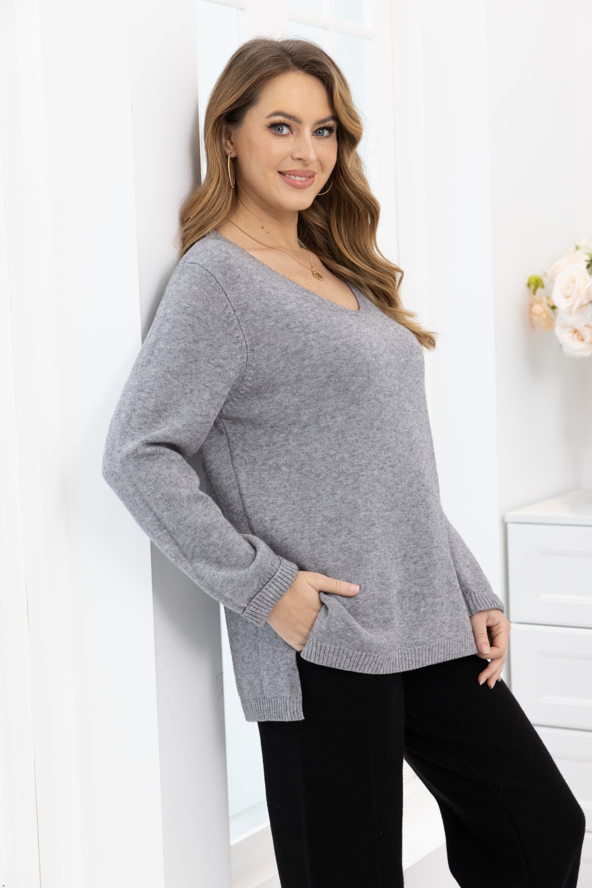 Elevate your wardrobe with Lisa's V neck Tunic. Crafted from luxurious Italian knit, its wide v neck, side slits, and ribbed edge offer both style and comfort. Versatile and chic, pair with a turtle neck or collared shirt for extra warmth. Embrace sophistication at its finest.