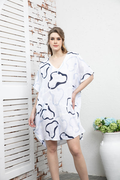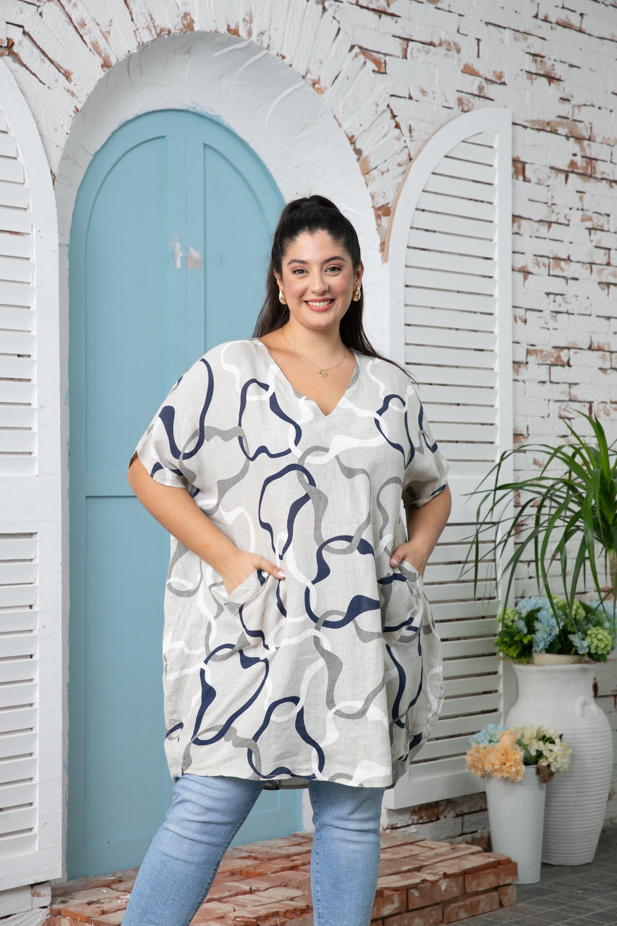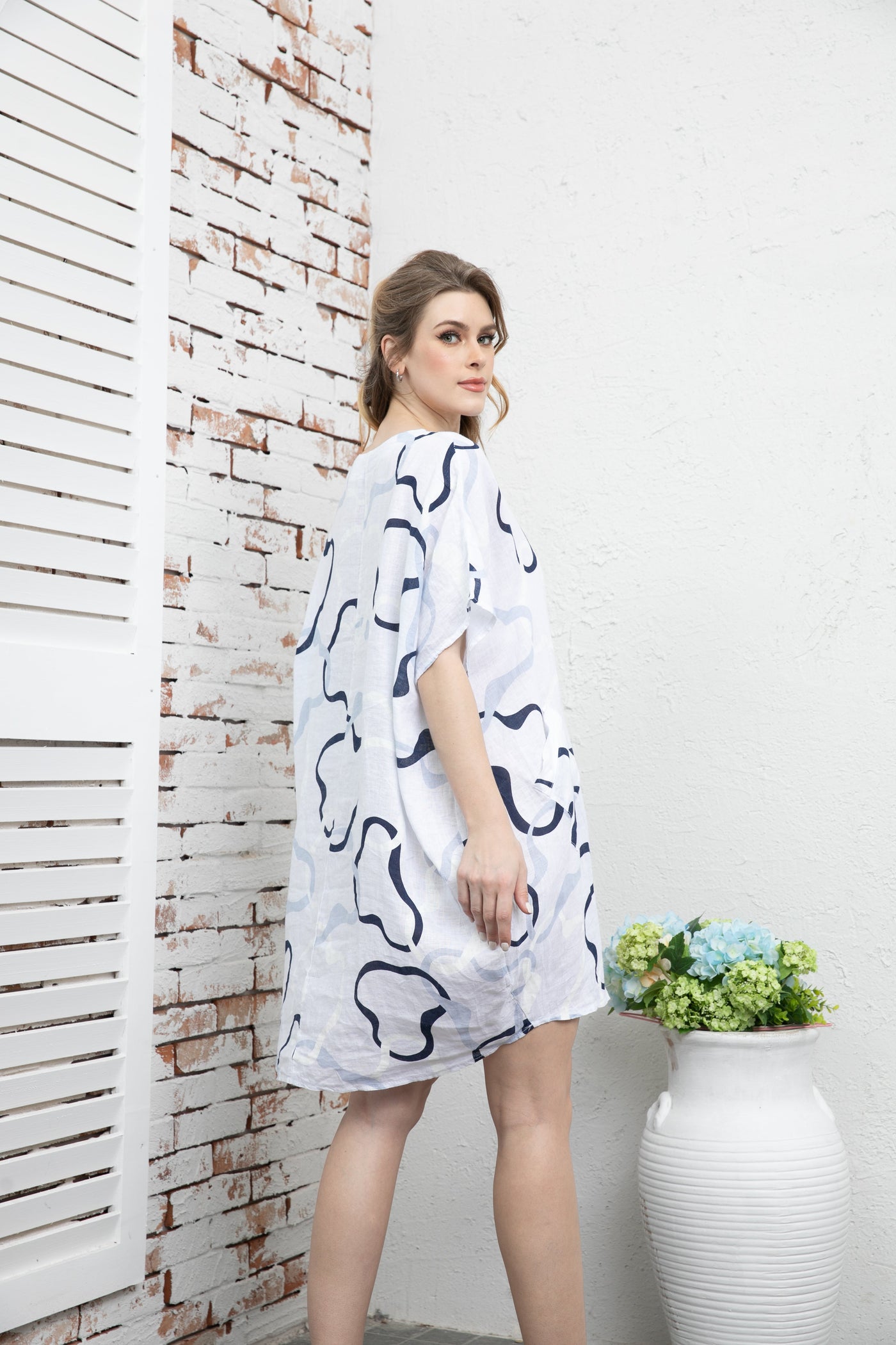 This Linen Tunic Dress is a classic and elegant choice for any occasion. Made in Italy, it features an abstract print that adds a touch of modernity. The linen material provides a comfortable and stylish look, making it a perfect addition to any wardrobe.