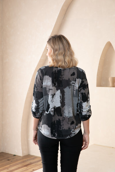 Available in three sophisticated colors - navy, gray, and brown - this top offers versatile options to suit your personal style and complement any outfit.