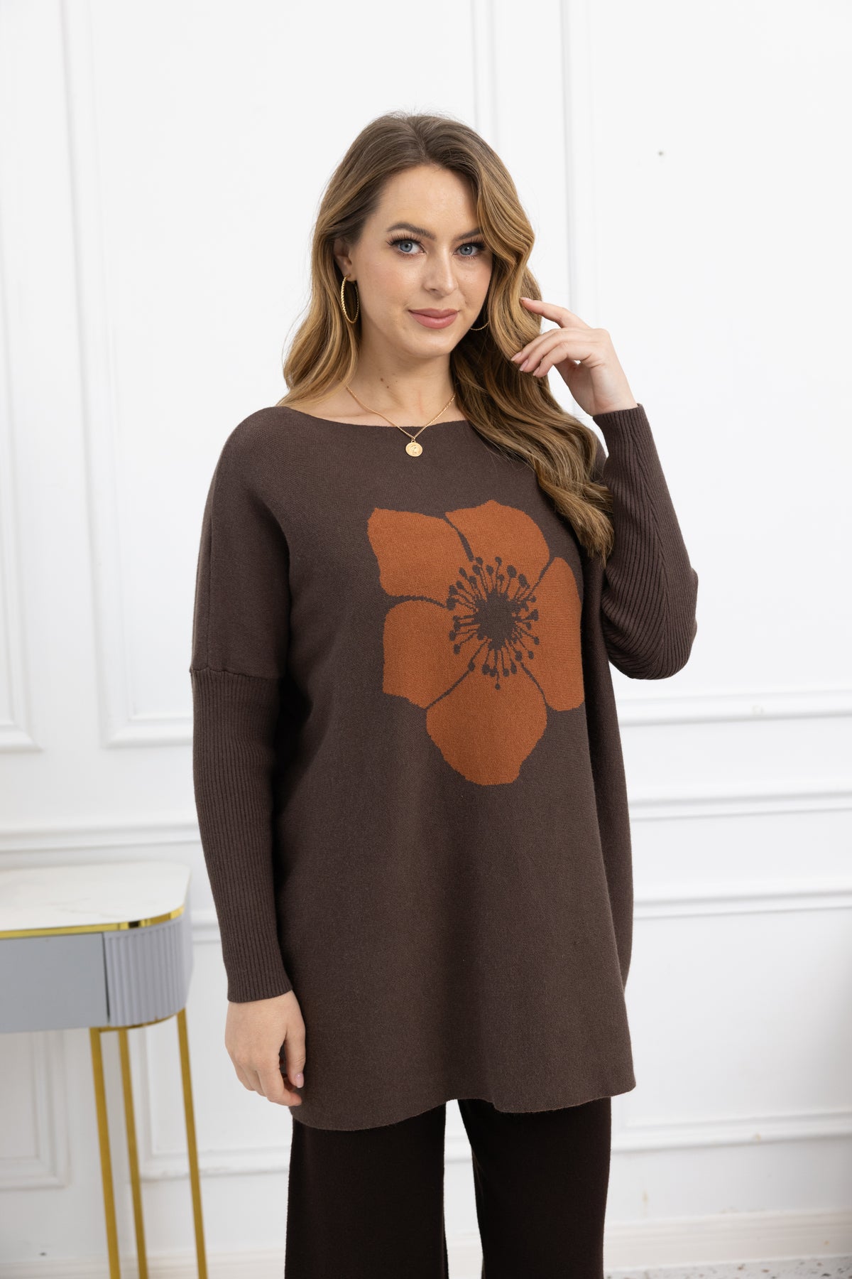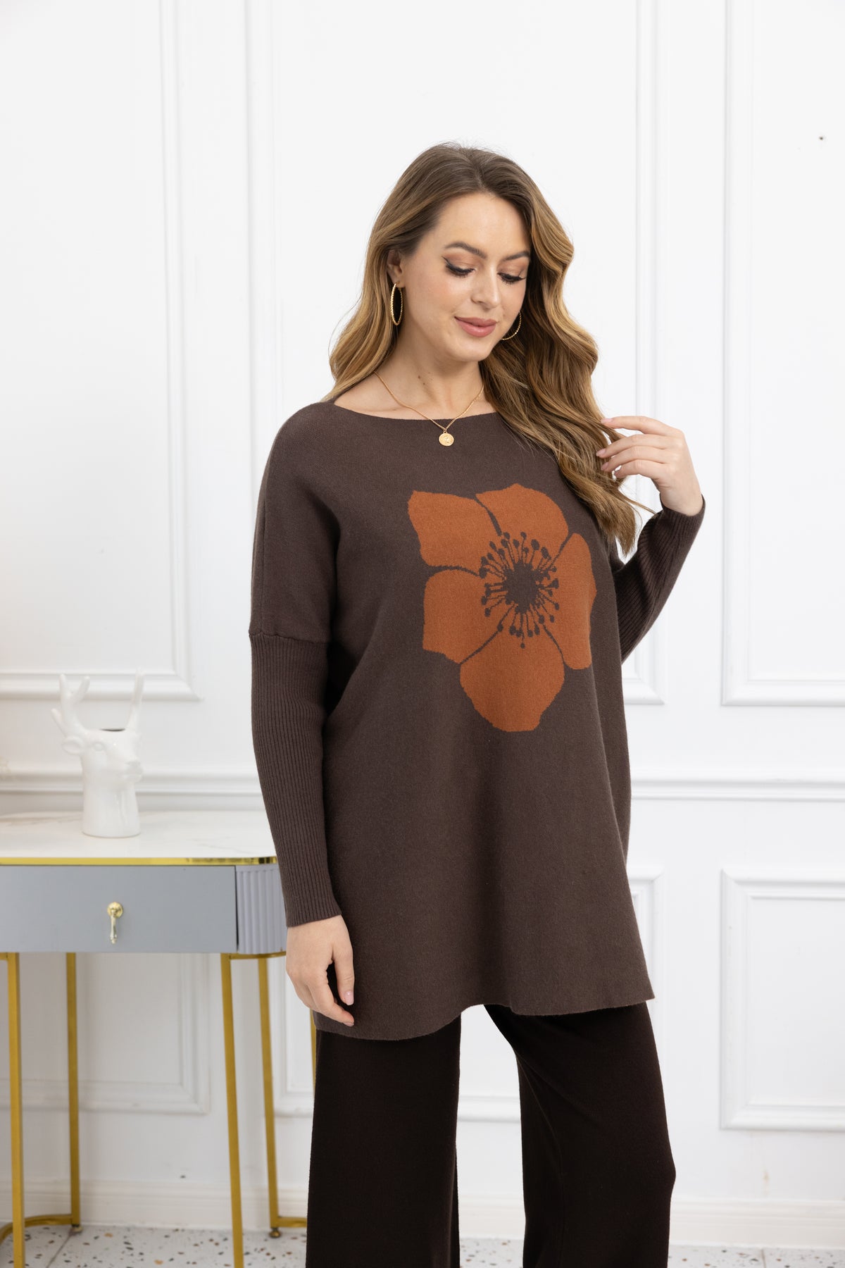 Similar to our popular Hibiscus sweater, this version boasts a longer length, providing added coverage and versatility. Whether paired with jeans for a casual day out or dressed up with trousers for a night on the town, the "Hibiscus Bloom" sweater is sure to turn heads and make a statement wherever you go.