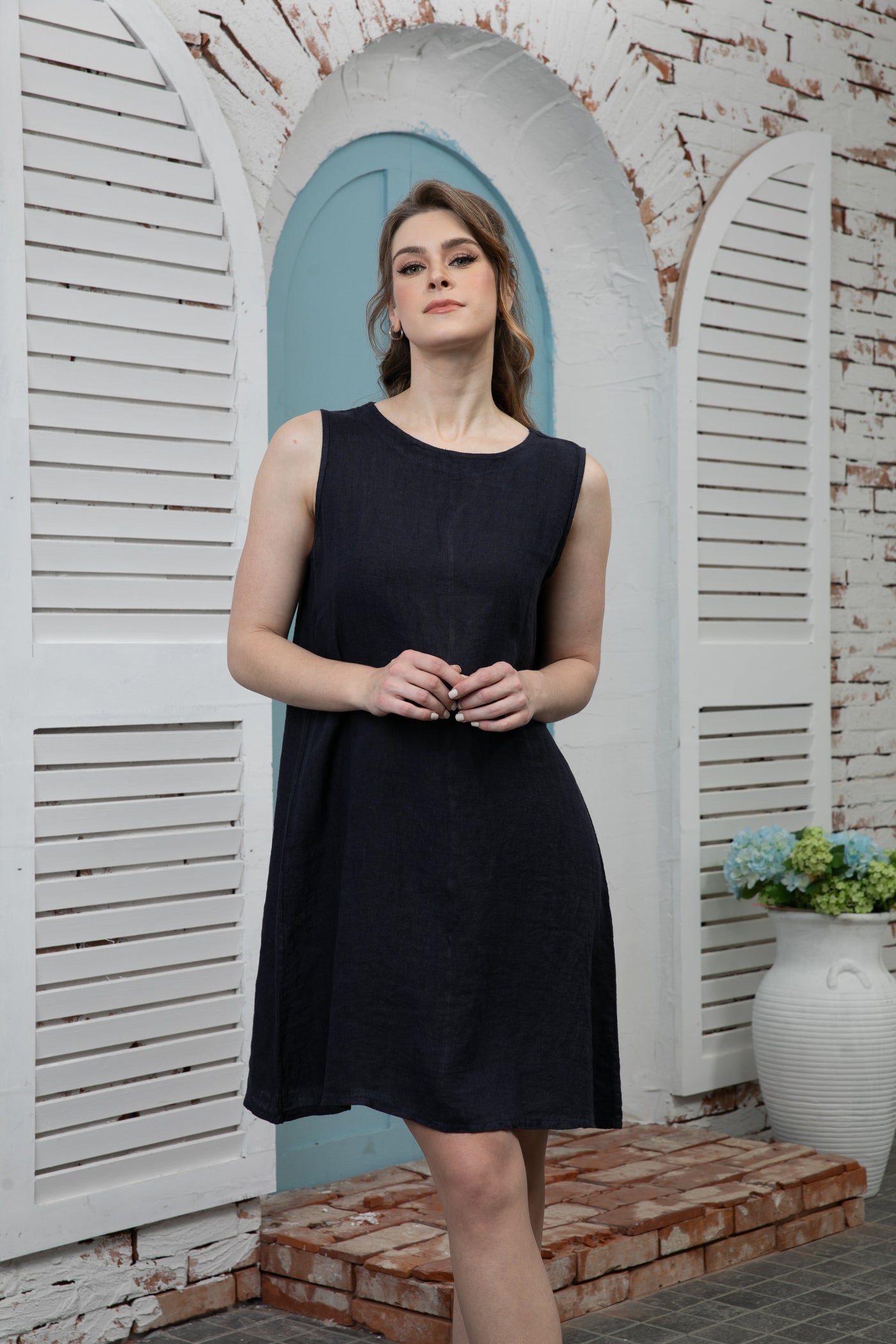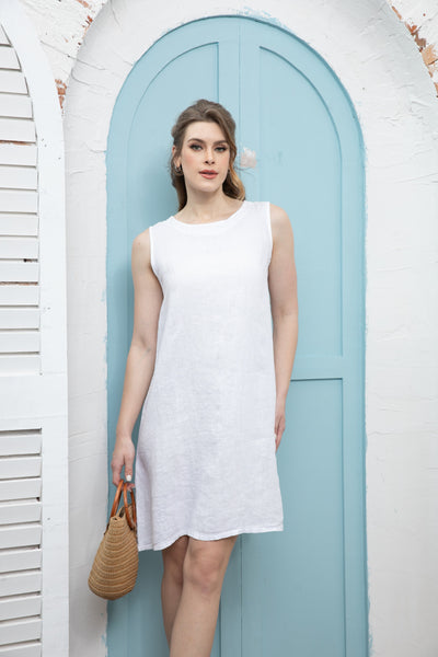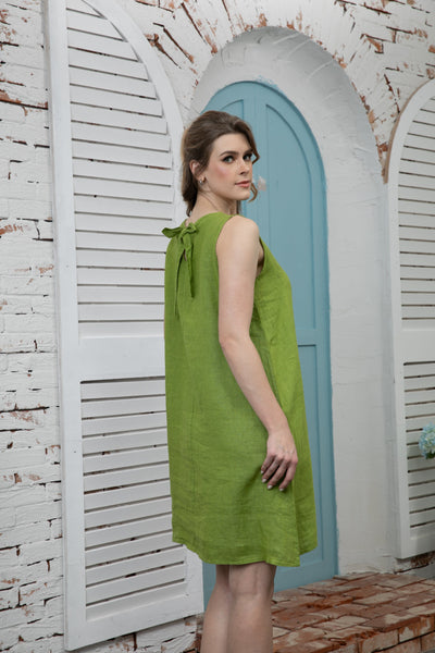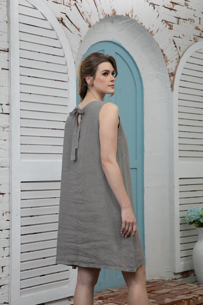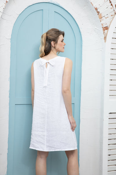 Embrace the warmth of a beautiful sunny day with the Sunny Day Linen Dress. This sleeveless above-knee dress features a breezy linen fabric that's perfect for staying cool and stylish. A charming keyhole detail at the back, adorned with a delicate bow, adds a touch of elegance and whimsy. Ideal for effortless summer days, this dress combines comfort with a flattering, feminine silhouette.