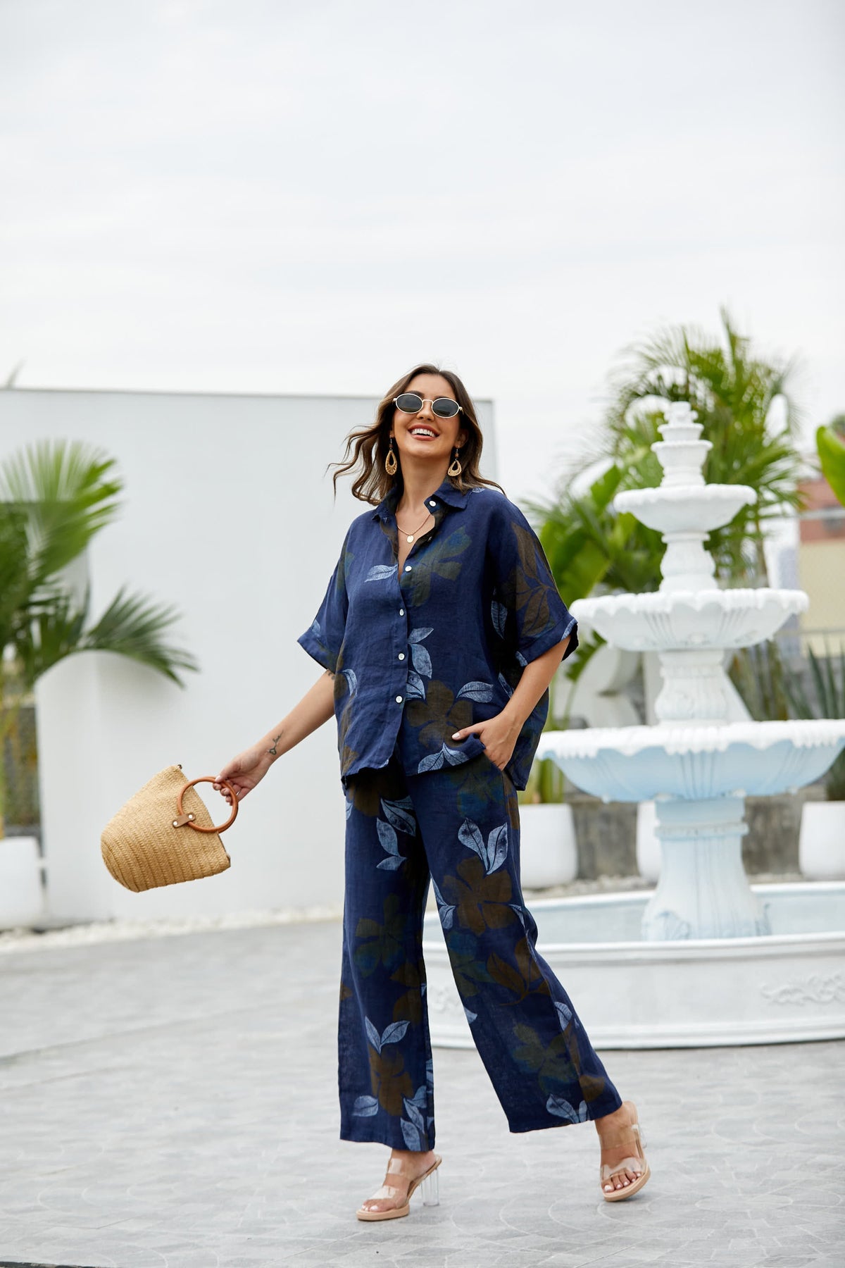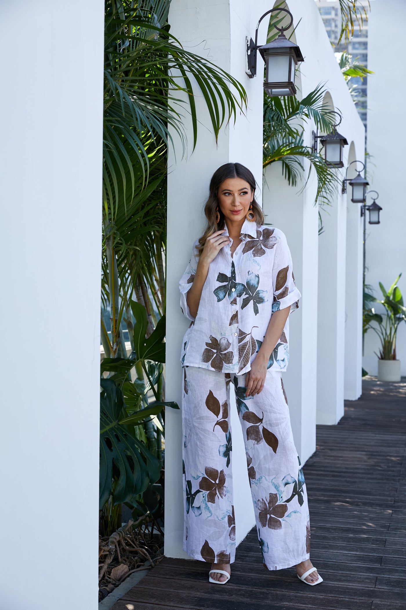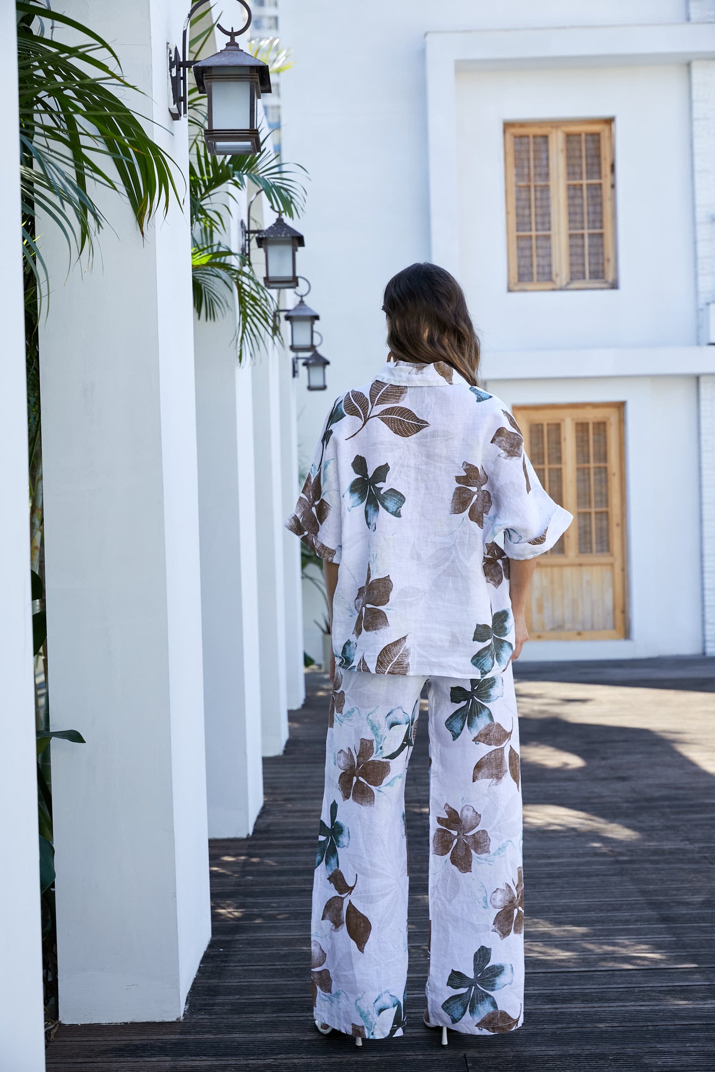 Perfect for versatile styling, these printed pants can be paired with Pia's Floral Short Sleeve Top for a coordinated matching set or combined with a solid top for an eye-catching, editorial ensemble. Embrace the luxury of breathable fabric and timeless Italian craftsmanship with every wear.