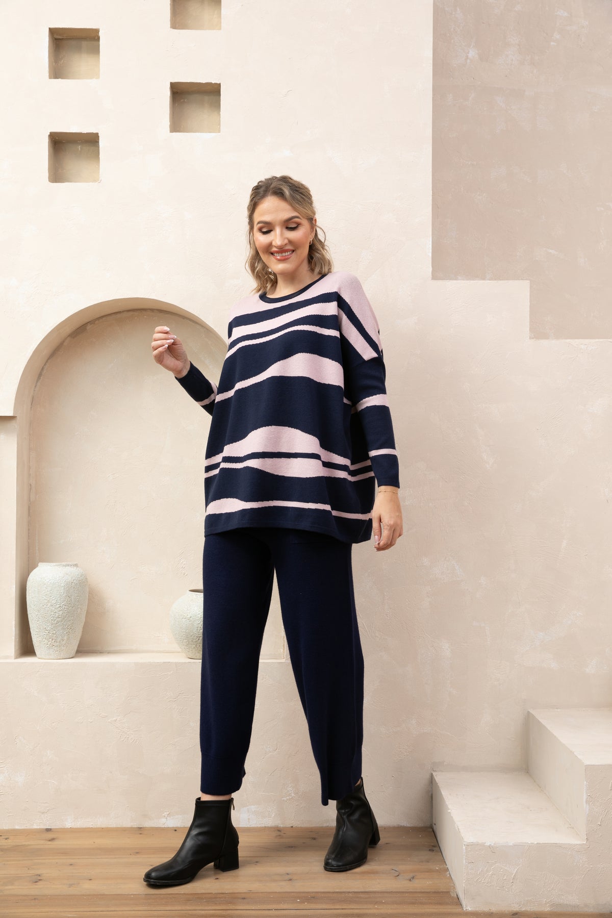The Mountain Scape Sweater features an abstract Mountain Scape motif, showcasing vibrant colors for a pop of style. One size fits all, making it an easy and versatile addition to any fall wardrobe. Expertly crafted for a comfortable fit, this sweater is both functional and fashionable.