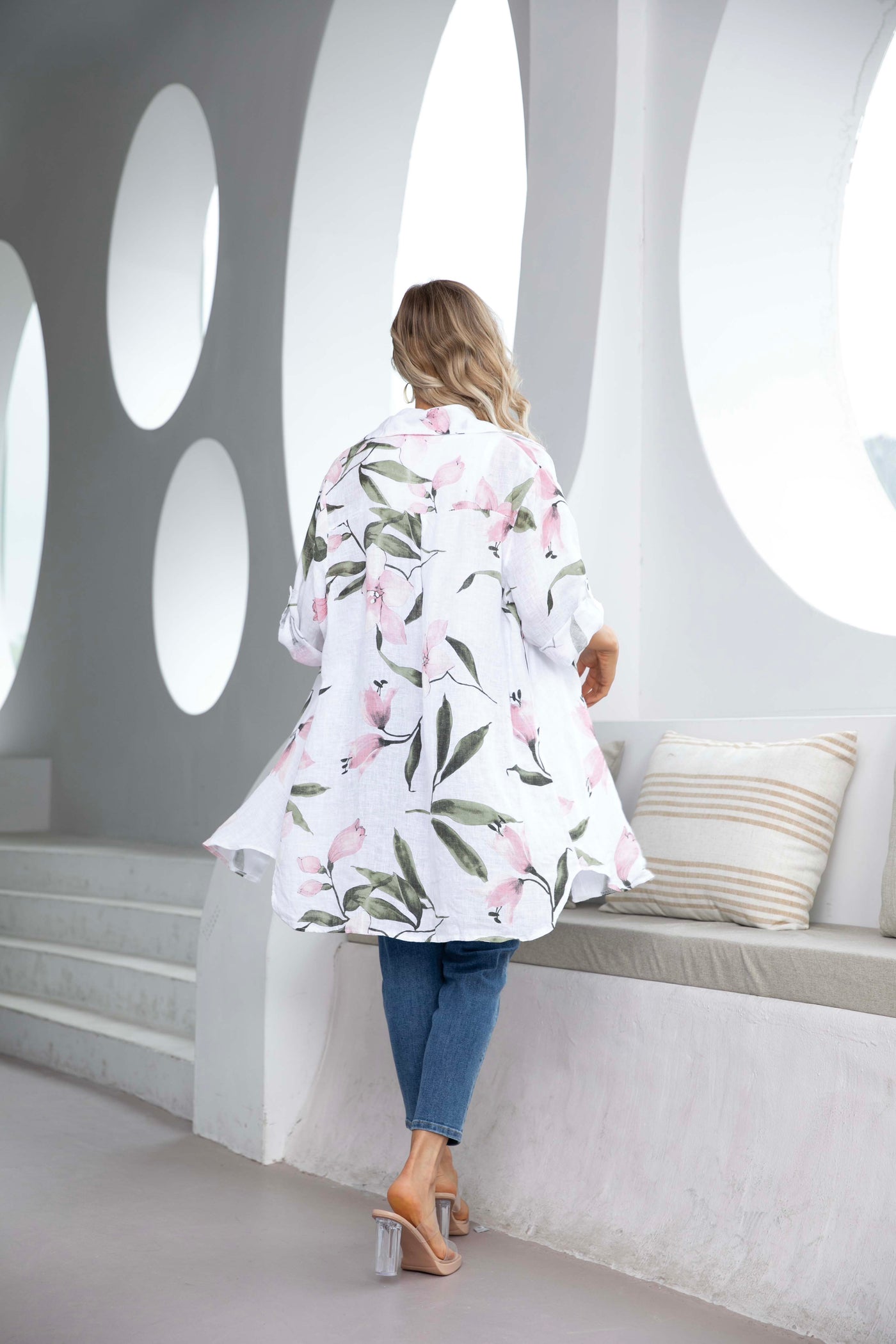 This Roll-up Sleeve Top is perfect for spring days! Crafted from lightweight linen and adorned with a floral pattern, this top will keep you looking and feeling cool. Roll up the sleeves for an effortless sunny day look!