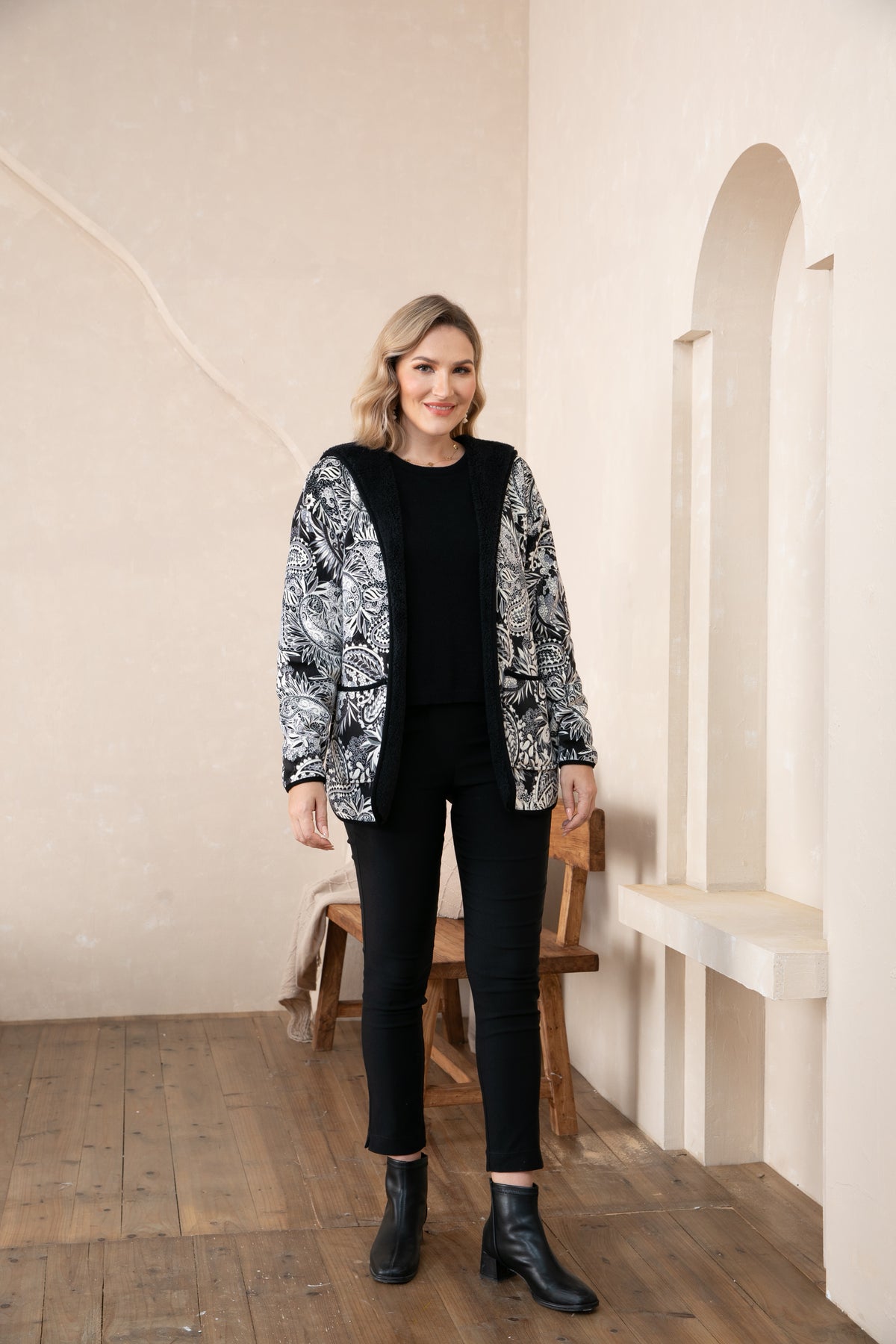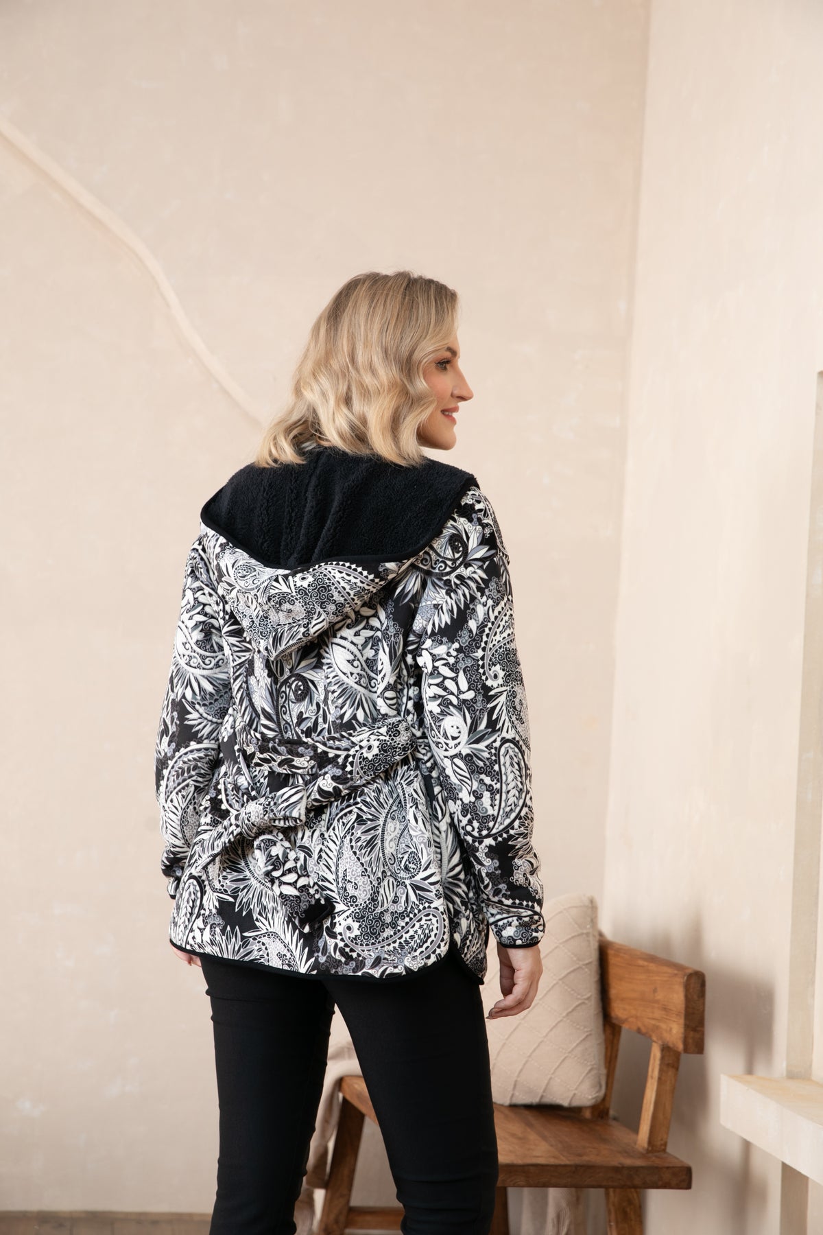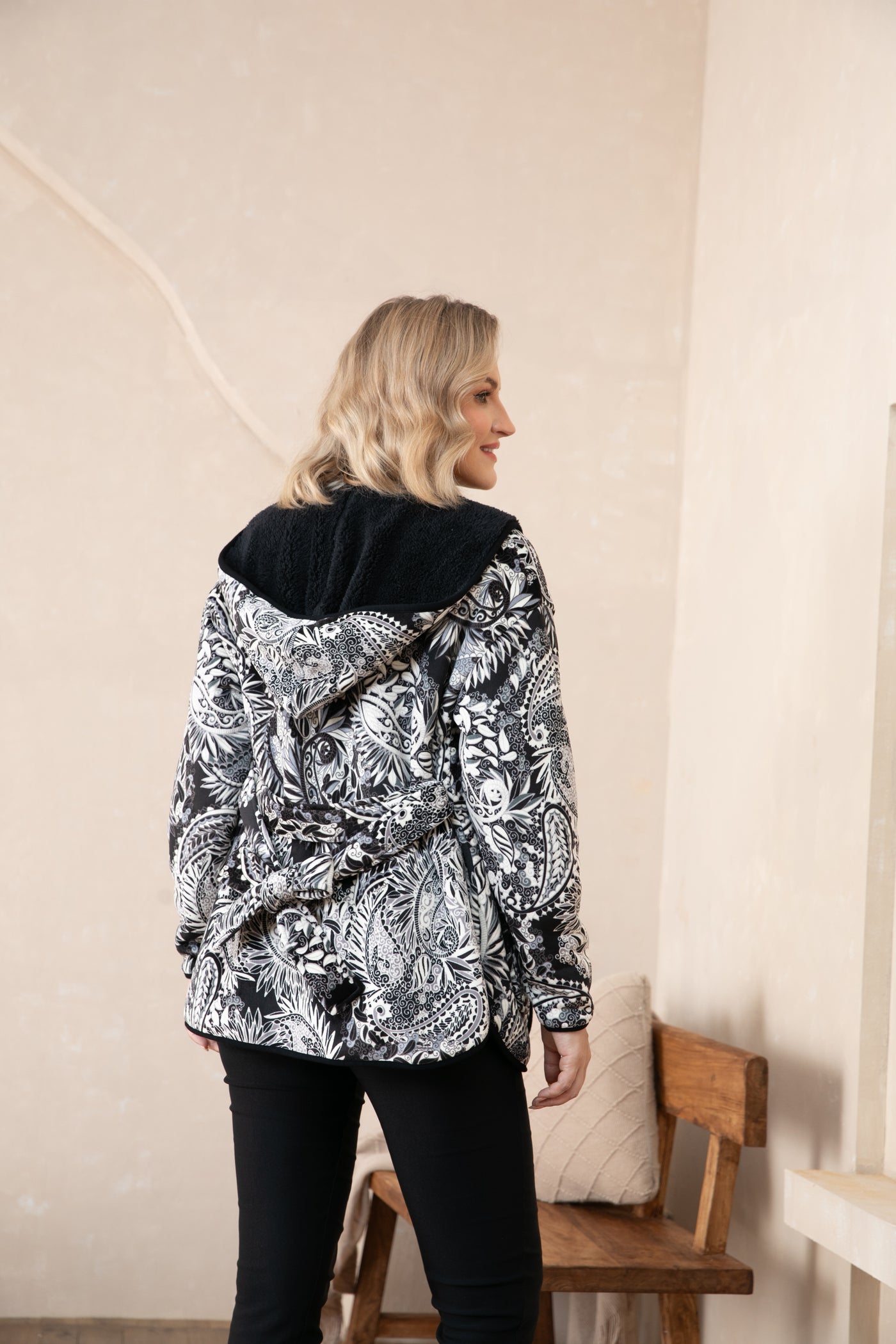 Conquer any adventure in Martha's Fleece Cardigan! With 2 bonded fleece fabrics, an intricate print, and a hood, this cardigan offers ultimate comfort and a phenomenal hand feel. Plus, it comes with pockets and a belt for added convenience. Dare to take on the day in style!