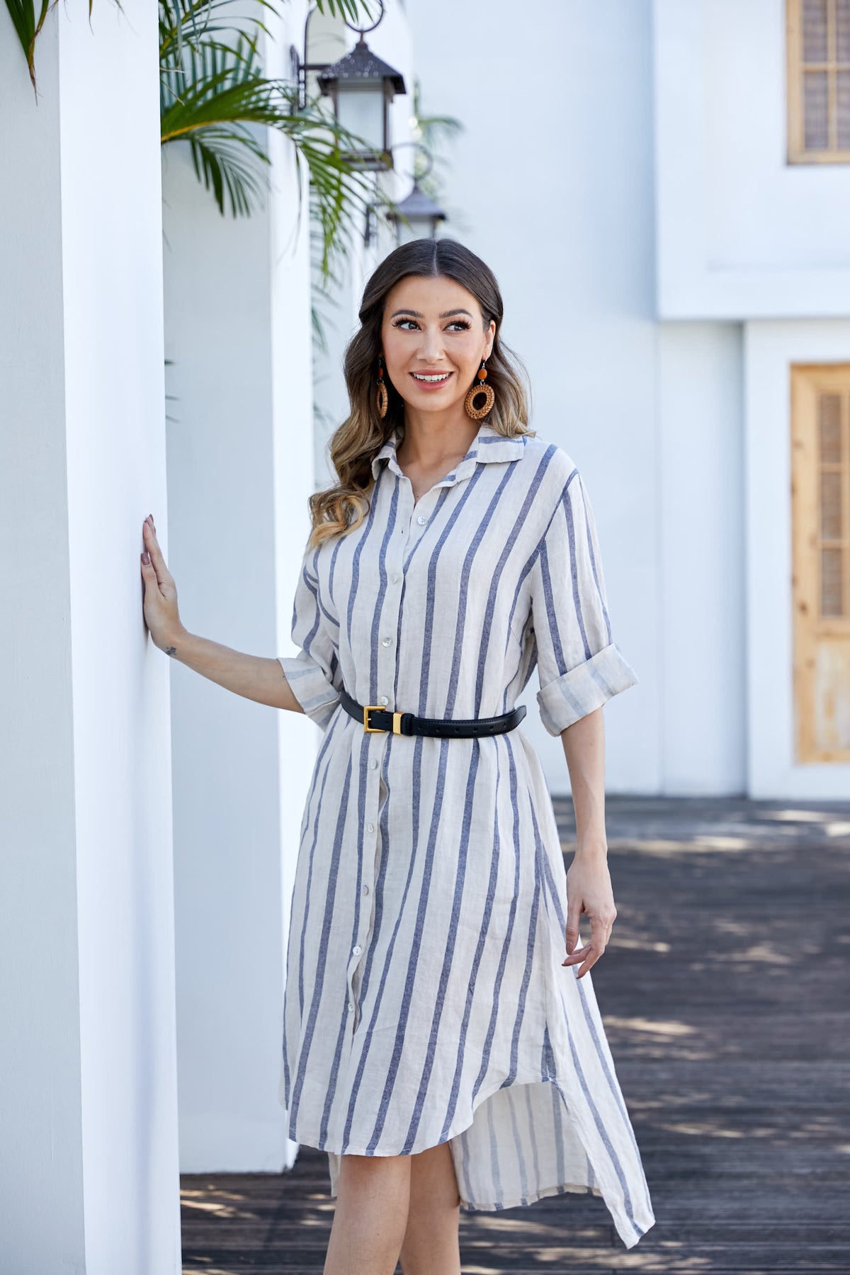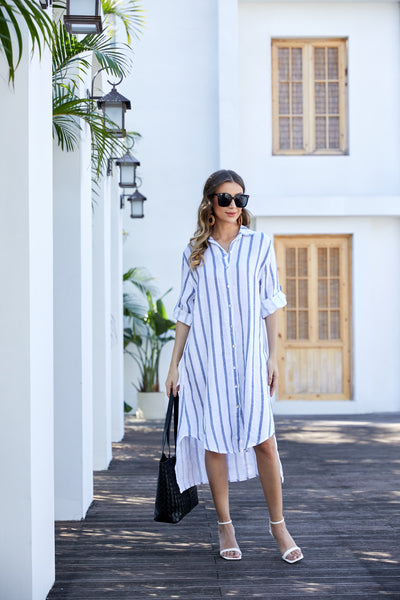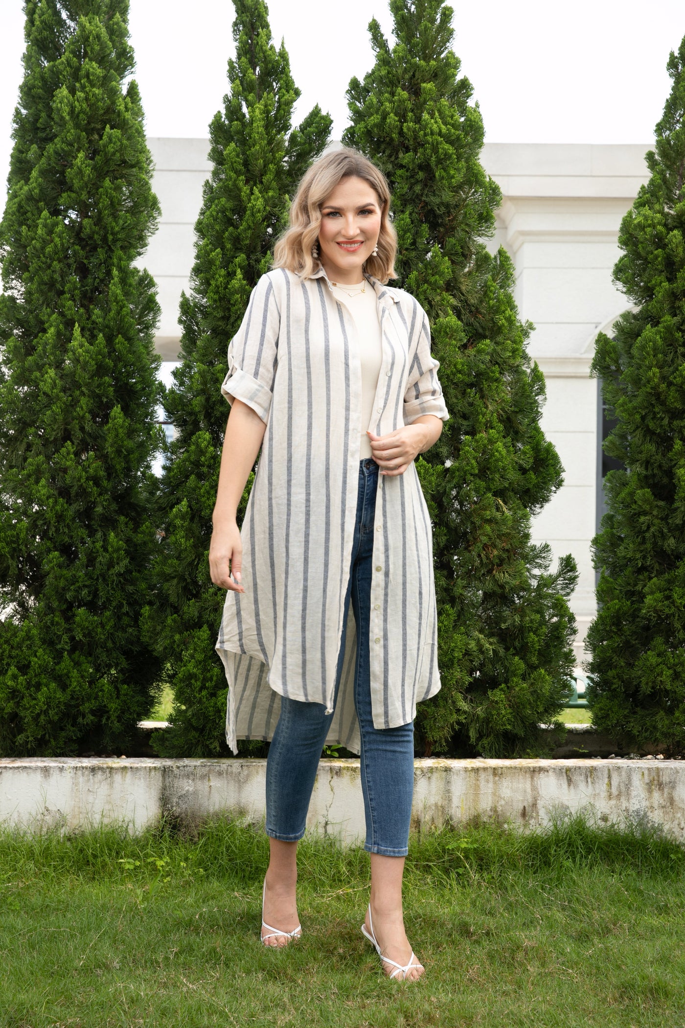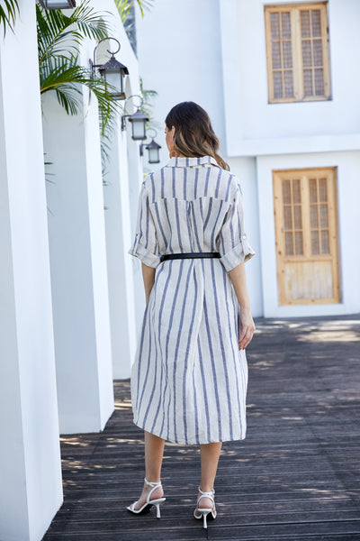 Elevate your wardrobe with the Jennifer's Linen Tunic, a timeless piece that combines effortless style with exceptional craftsmanship. Made in Italy from 100% premium linen, this tunic features a sophisticated stripe print in neutral colorways, making it a versatile addition to your wardrobe. The long duster length adds an elegant touch, perfect for layering over your favorite outfits or wearing solo for a sleek, relaxed look.