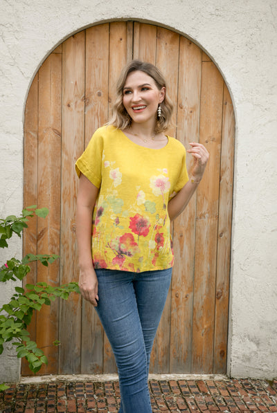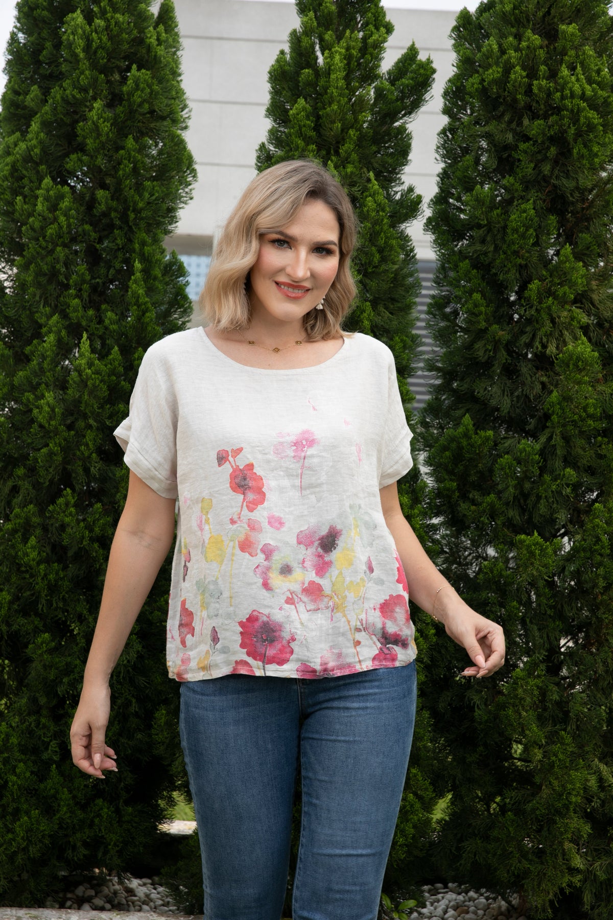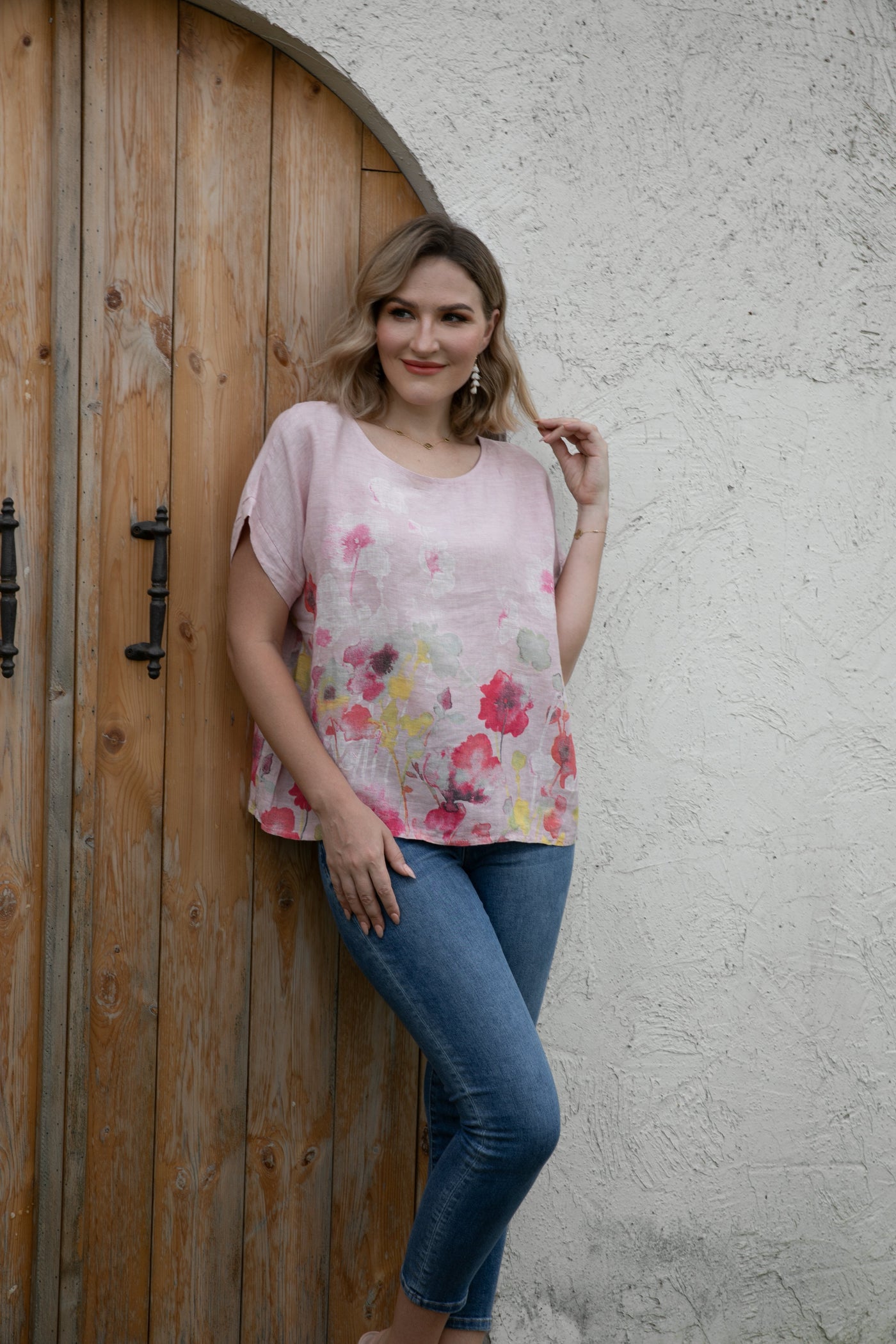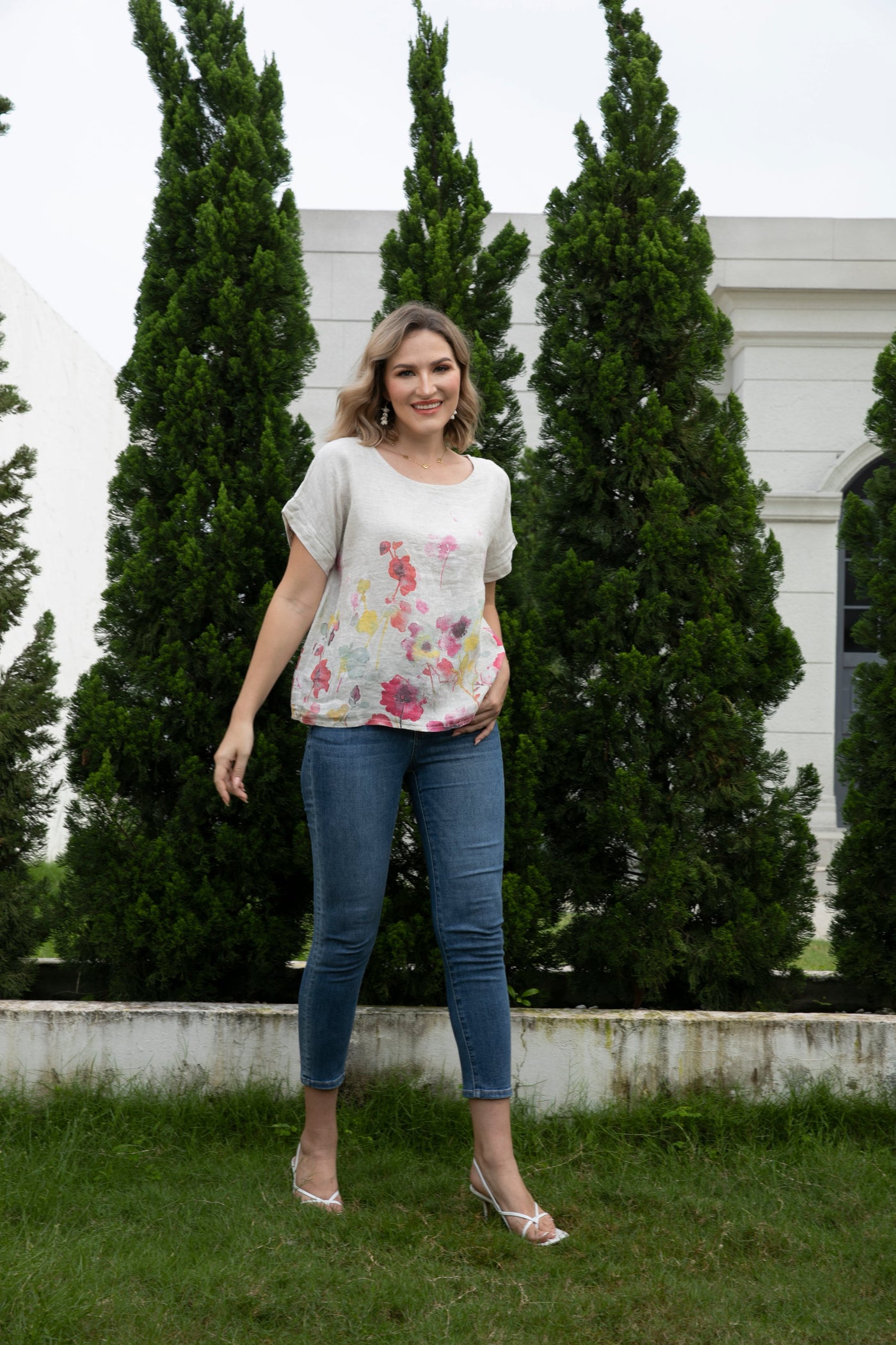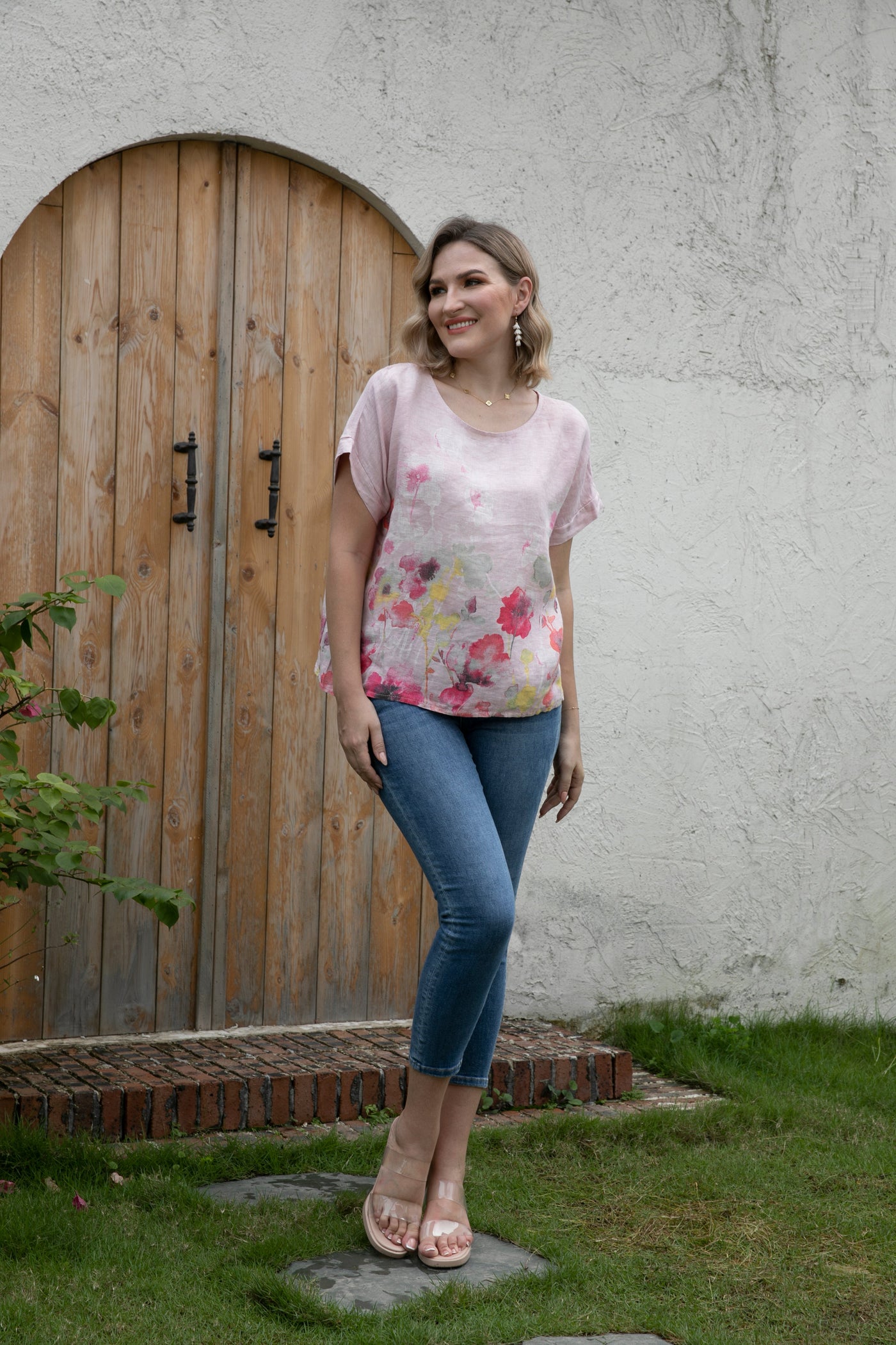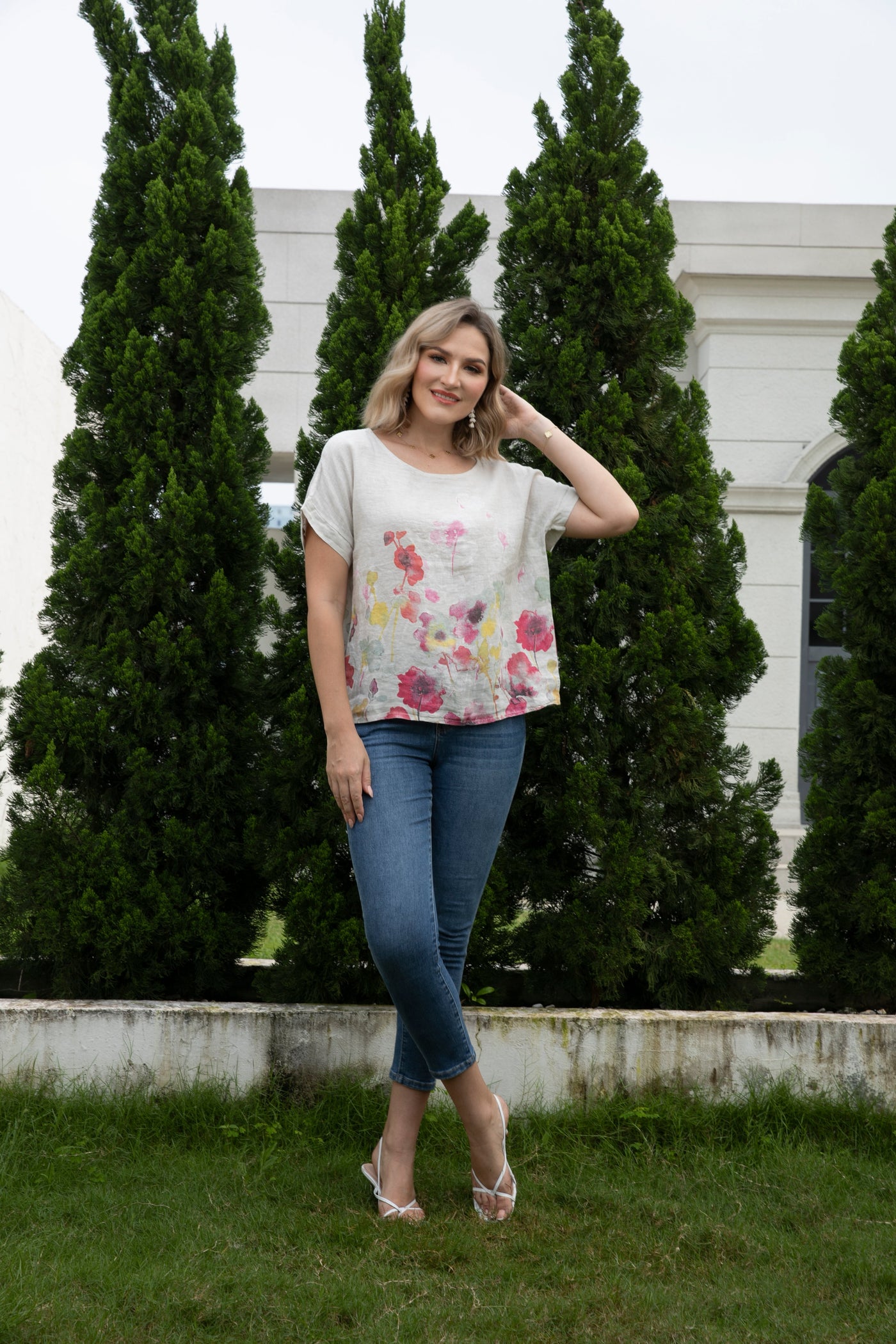 Angela’s Watercolor Blossom Linen Top is your go-to piece for blending artful design with everyday versatility. Whether you’re attending a weekend brunch or enjoying an afternoon stroll, embrace the effortless beauty and quality of Italian craftsmanship.