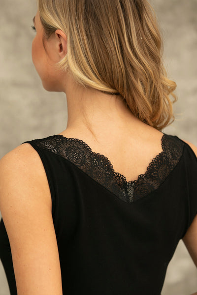 The beautiful Bamboo Spaghetti Tank Top with Lace Trim will keep you cool and will give you the softest feel for summer.