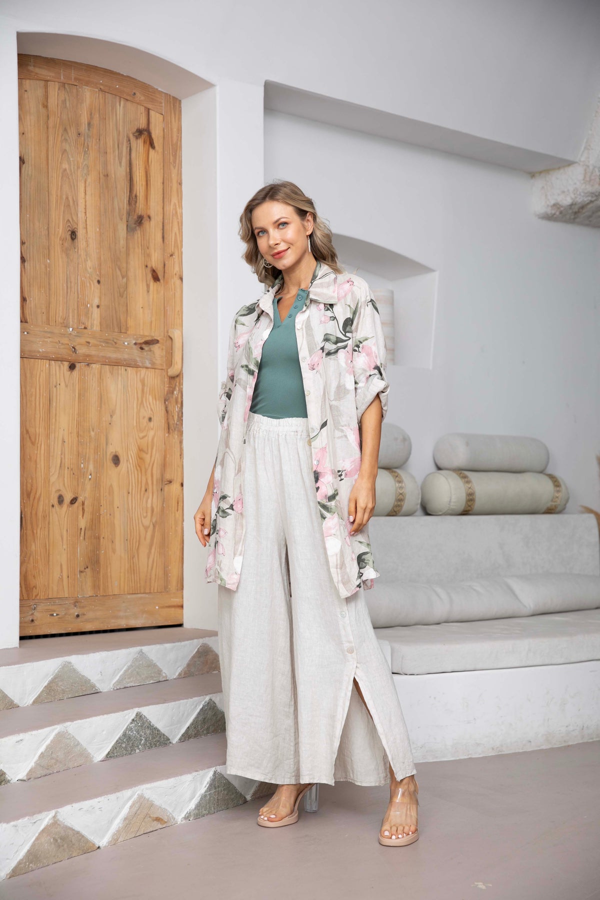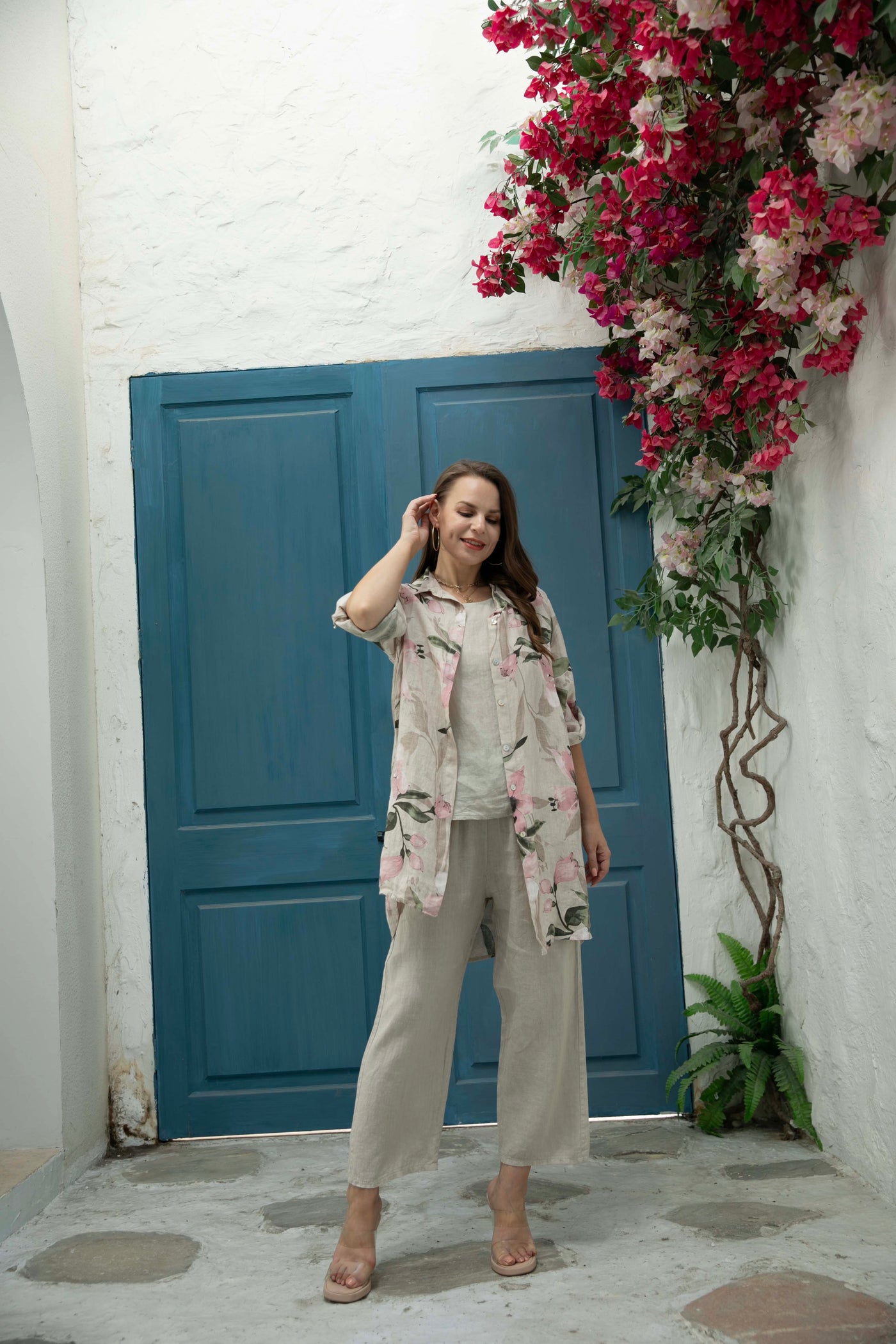 This Roll-up Sleeve Top is perfect for spring days! Crafted from lightweight linen and adorned with a floral pattern, this top will keep you looking and feeling cool. Roll up the sleeves for an effortless sunny day look!