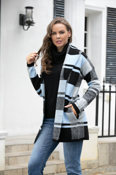 Our Knit Fall Cardigan is a cozy and stylish wardrobe essential designed to keep you warm and fashionable during the fall season. With its chic block print, this cardigan adds a modern and sophisticated touch to any outfit.
