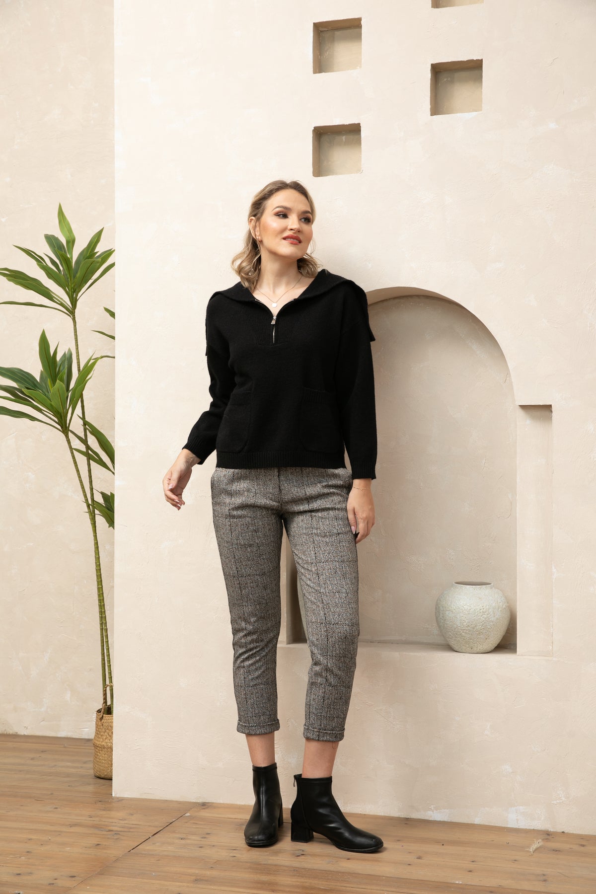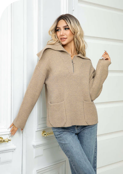 Upgrade your wardrobe with our Zip Ribbed Knit Sweater and make a statement wherever you go.