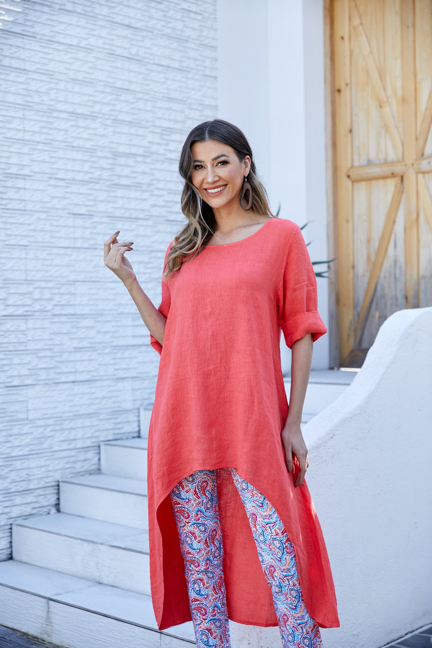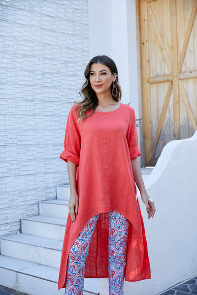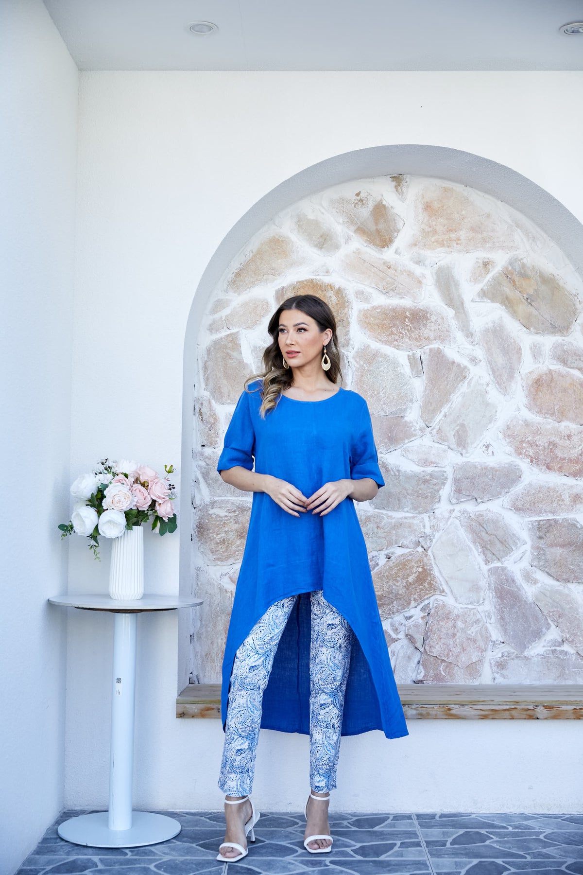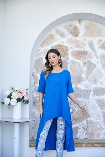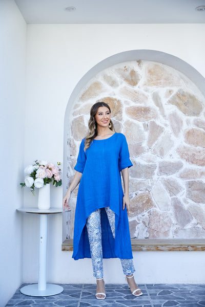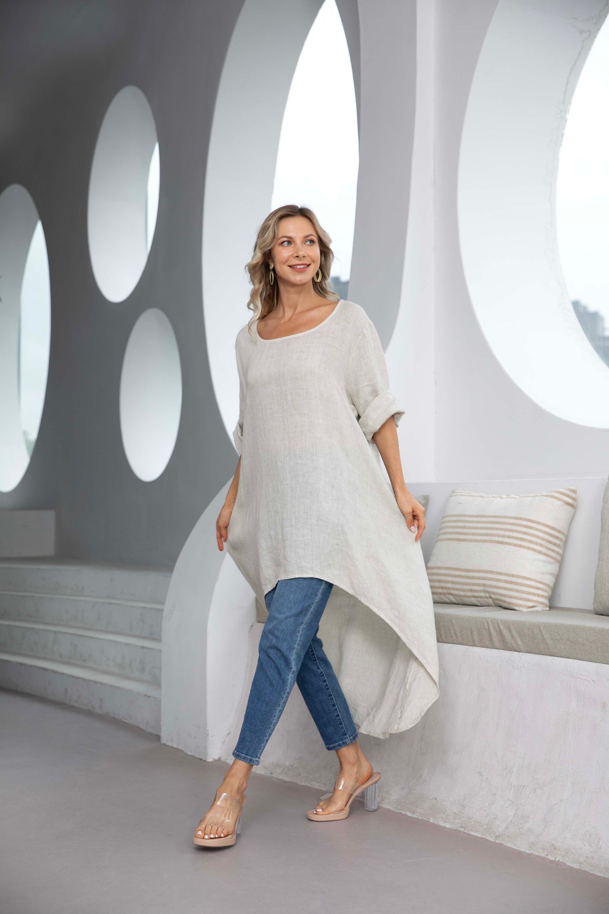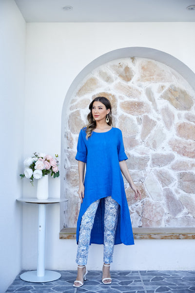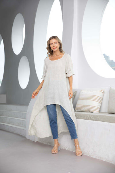 Experience luxury and elegance with Natalia's 3/4 Sleeve Linen Top, featuring a stunning train that will leave you jaw-dropping. The sophisticated design and timeless style make this top a must-have for any wardrobe. Elevate your look with this exclusive piece.