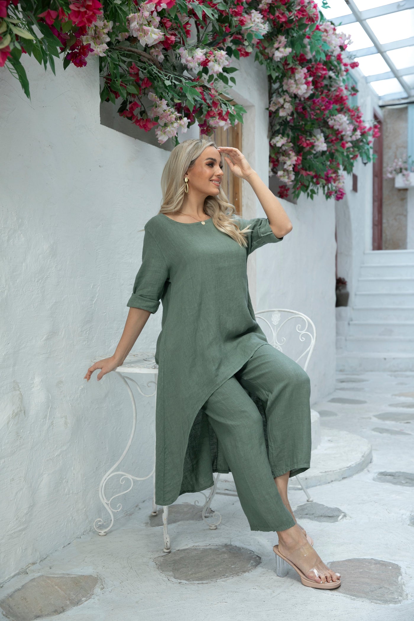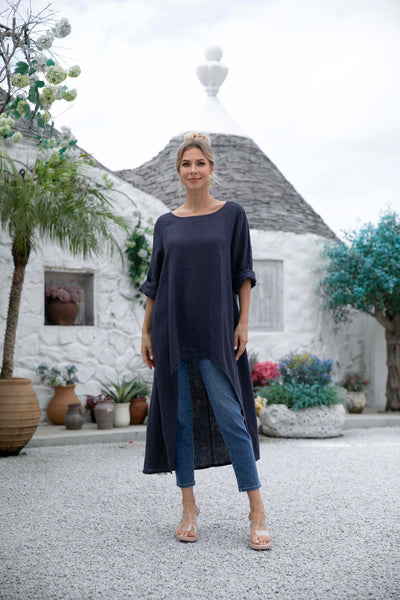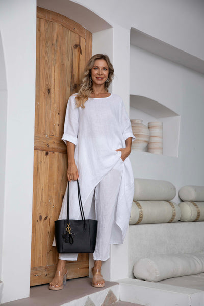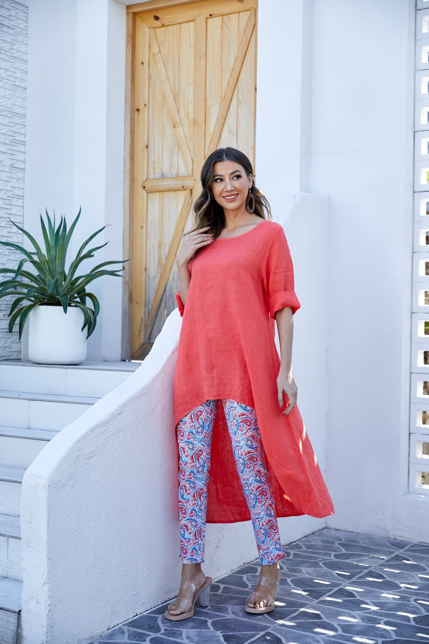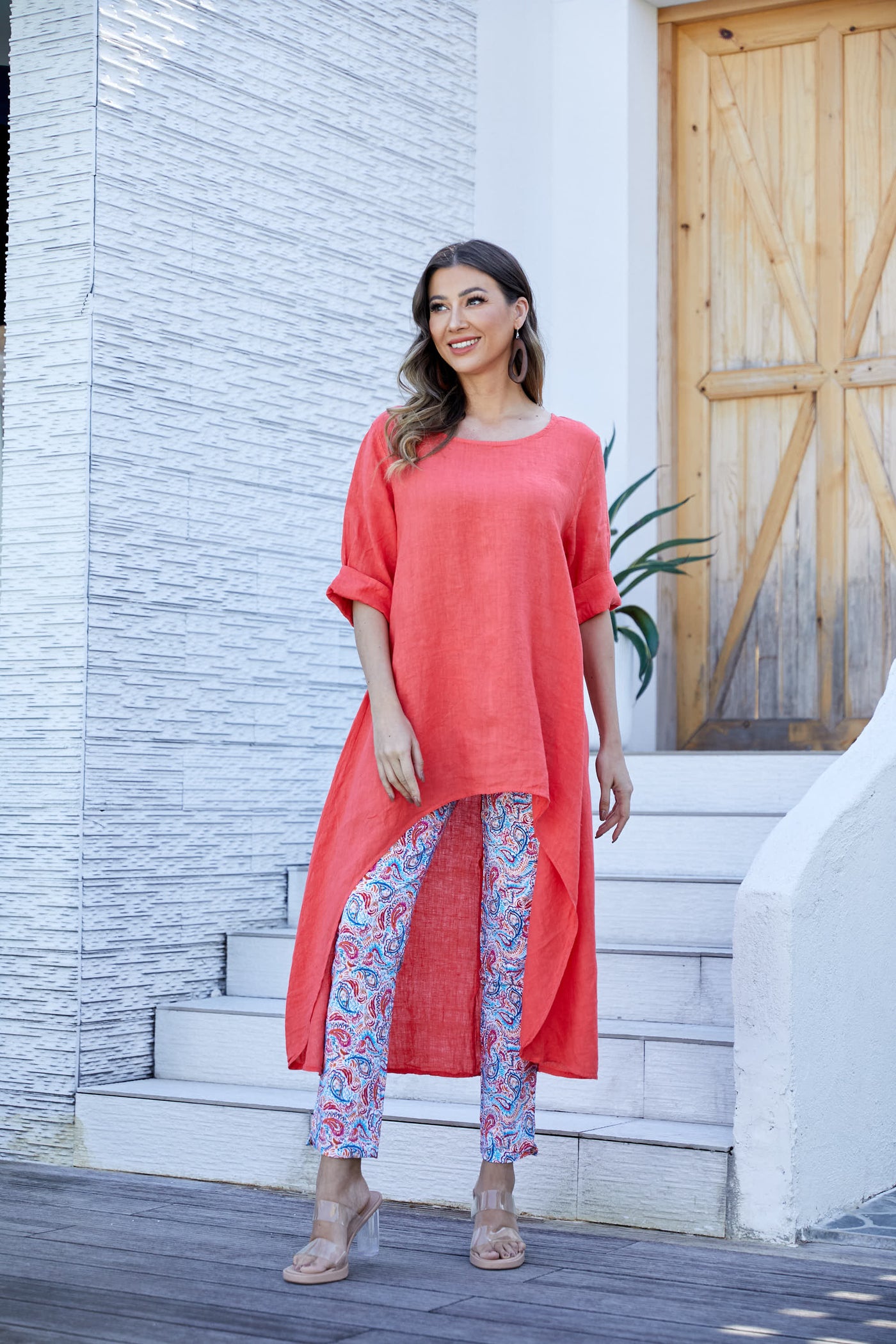 Experience luxury and elegance with Natalia's 3/4 Sleeve Linen Top, featuring a stunning train that will leave you jaw-dropping. The sophisticated design and timeless style make this top a must-have for any wardrobe. Elevate your look with this exclusive piece.