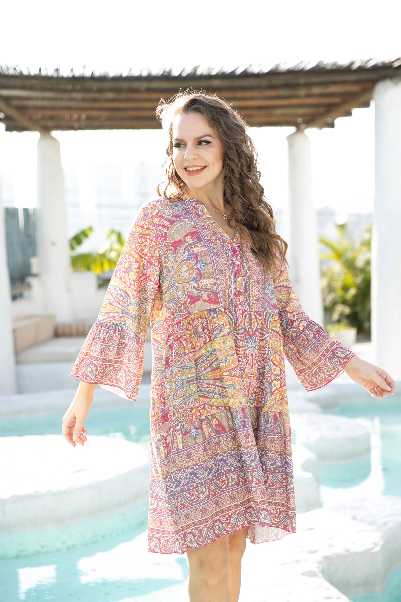 Mirabella's Paisley Dress is crafted to perfection from premium Italian fabrics. Boasting a striking paisley print, this dress is designed for a luxuriously lightweight and airy feel, its 100% Viscose fabrication and tier structure creating an effortless ensemble. An elegantly refined piece with timeless appeal.