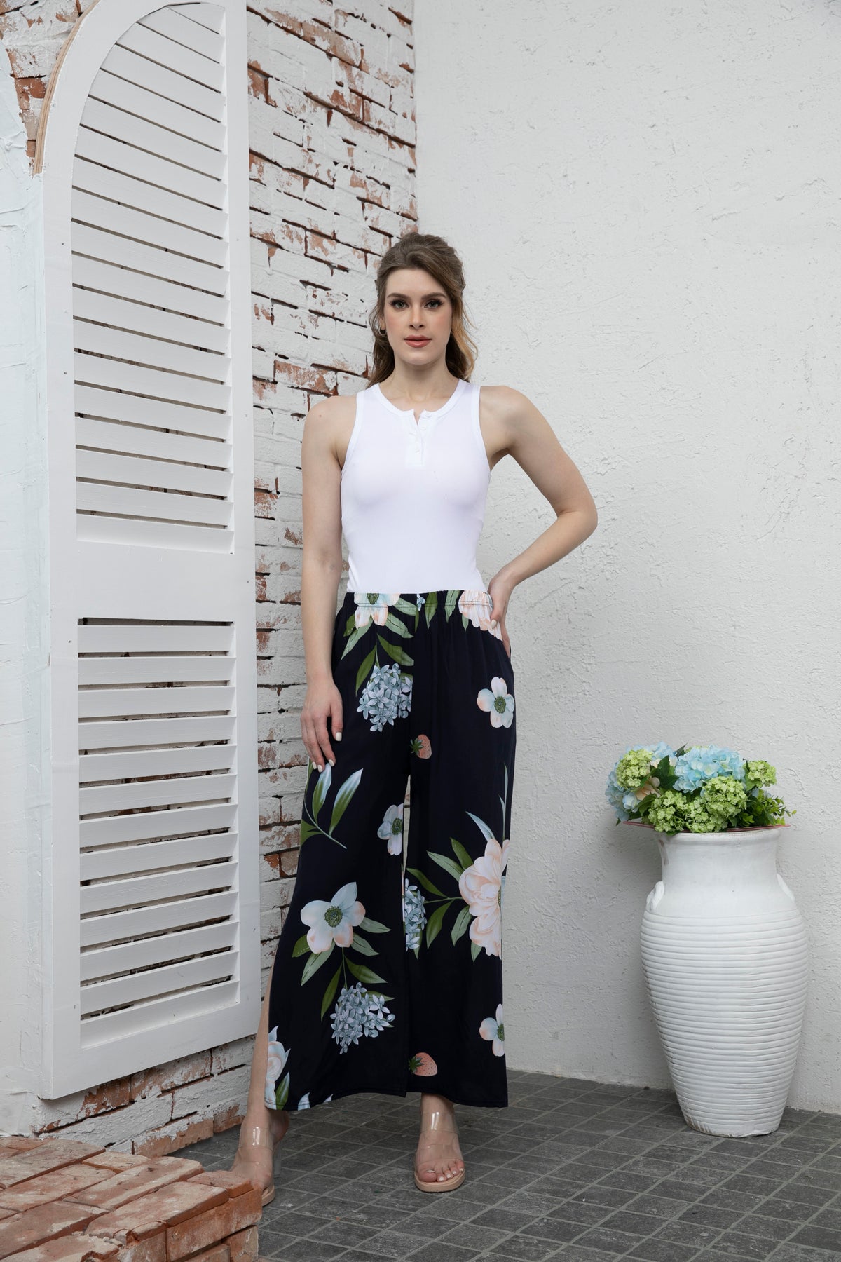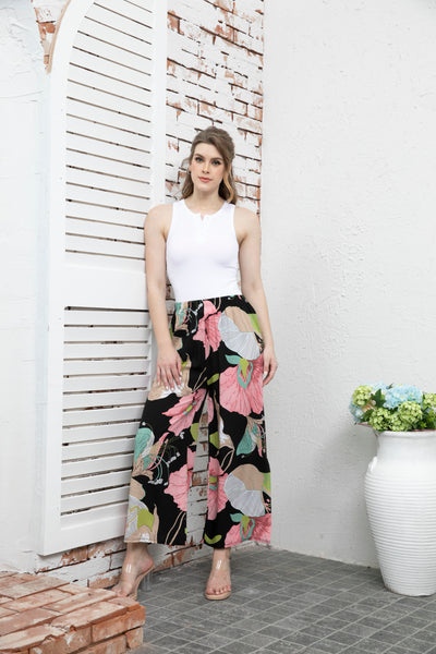 Elevate your wardrobe with our floral slinky wide leg fashion pants! With 4 unique designs to choose from, these pants will make a statement wherever you go. The slits on the side add a touch of allure, making them perfect for any occasion. Embrace your bold and stylish side with ease.