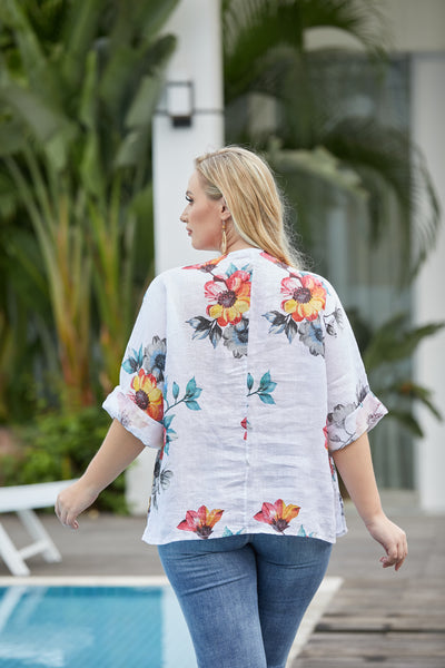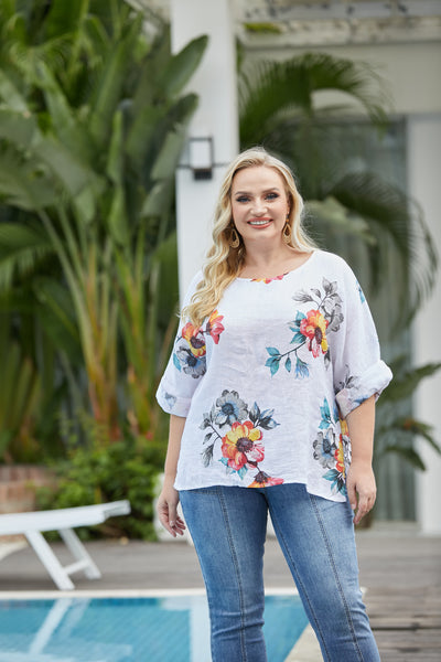 The Anemone Floral Top, made in Italy, is the perfect blend of style and comfort. Crafted from 100% linen, this top is soft, breathable, and designed to keep you cool throughout the day. Featuring a stunning floral pattern, it adds a touch of nature-inspired elegance to any wardrobe. With a relaxed fit that gently drapes over the body, this top ensures freedom of movement, offering a comfortable, easygoing silhouette without any cling. Ideal for warm weather or layering, the Anemone Floral Top is a timeless piece that brings effortless sophistication to your casual look.