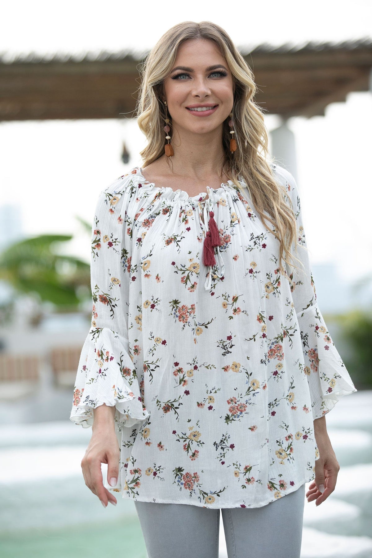 This beautiful  Off-Shoulder Top will be your go-to look this summer. With its gorgeous colorful print, this Top is perfect for any situation.