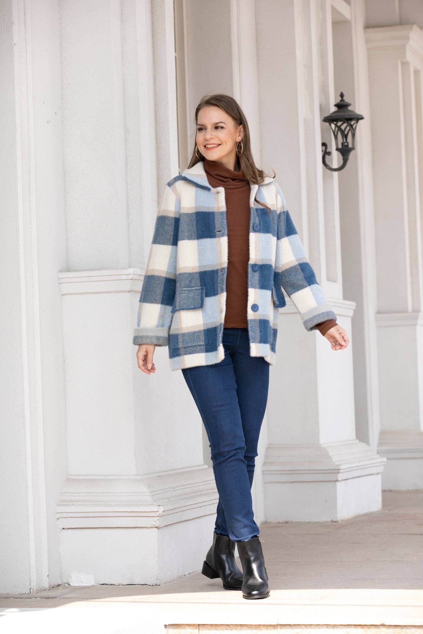 Stay warm and stylish in this Winter Short Coat. Crafted from high-quality fabrics for chilly season comfort, this beautiful coat features a bold plaid design, perfect for cold months. Its timeless style is sure to elevate any wardrobe!